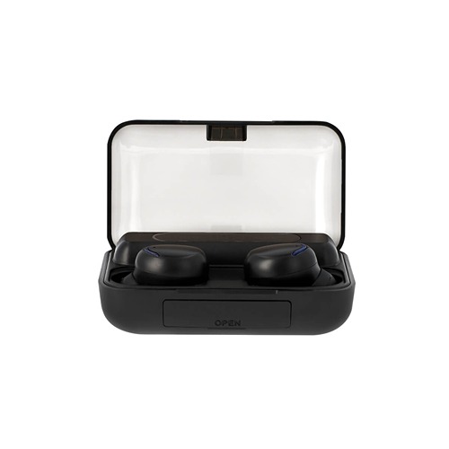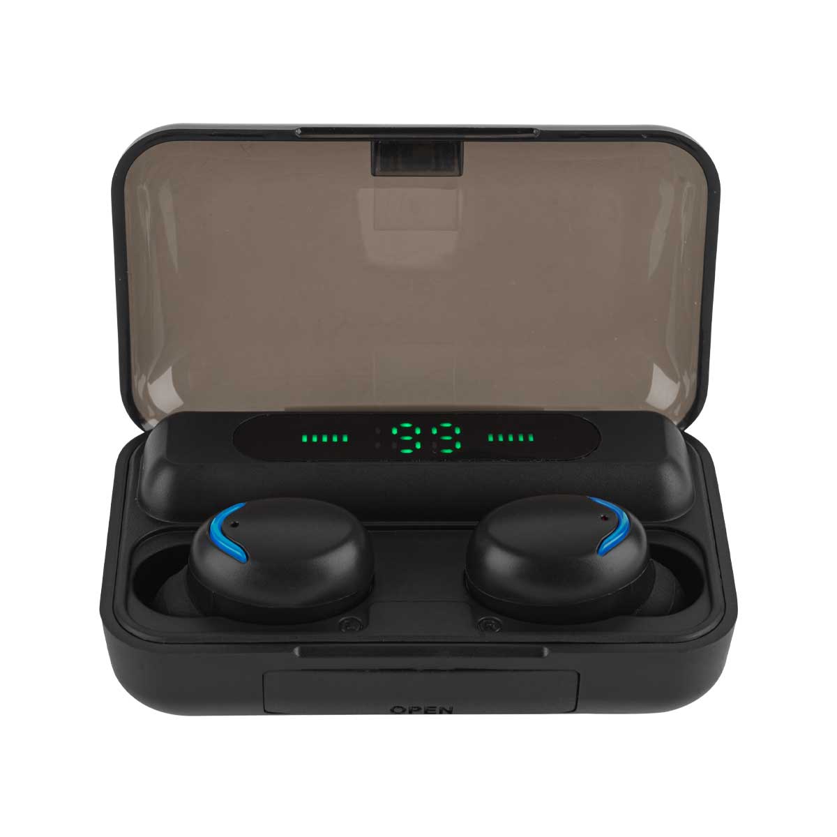 Descripcion: Audífonos bluetooth inalámbricos con power bank de 1,500 mAh. Función manos libres. Rango de conexión 10 metros. Reproducción de música 5 hrs aproximadamente. Incluye cable cargador USB, 4 repuestos de goma y estuche para recargar los audífonos con pantalla digital que indica el nivel de carga del power bank y los audífonos.