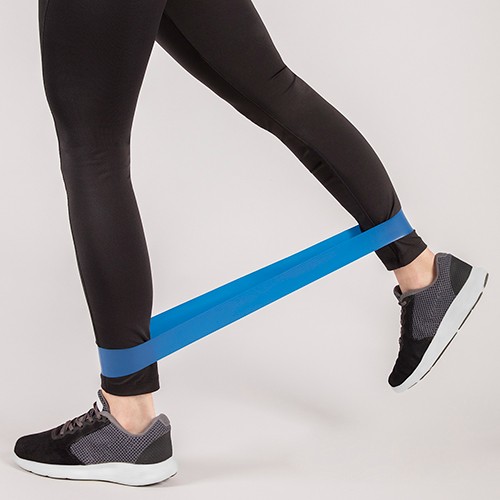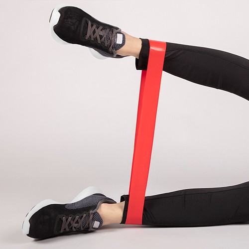 Set de 3 bandas elásticas con diferentes resistencias. Banda roja con resistencia alta, banda amarilla con resistencia media y banda azul con resistencia baja. Incluye bolsa con jareta.
