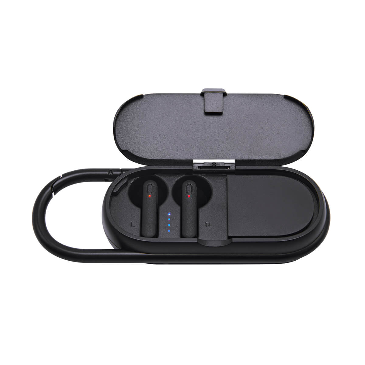 Descripcion: Bocina con audífonos bluetooth integrados. Pueden utilizarse ambas funciones al mismo tiempo. Controles integrados touch para volumen y reproducción de audio. Rango de conexión 10 metros. Asa integrada tipo gancho para transportarla fácilmente. Incluye cable cargador USB.