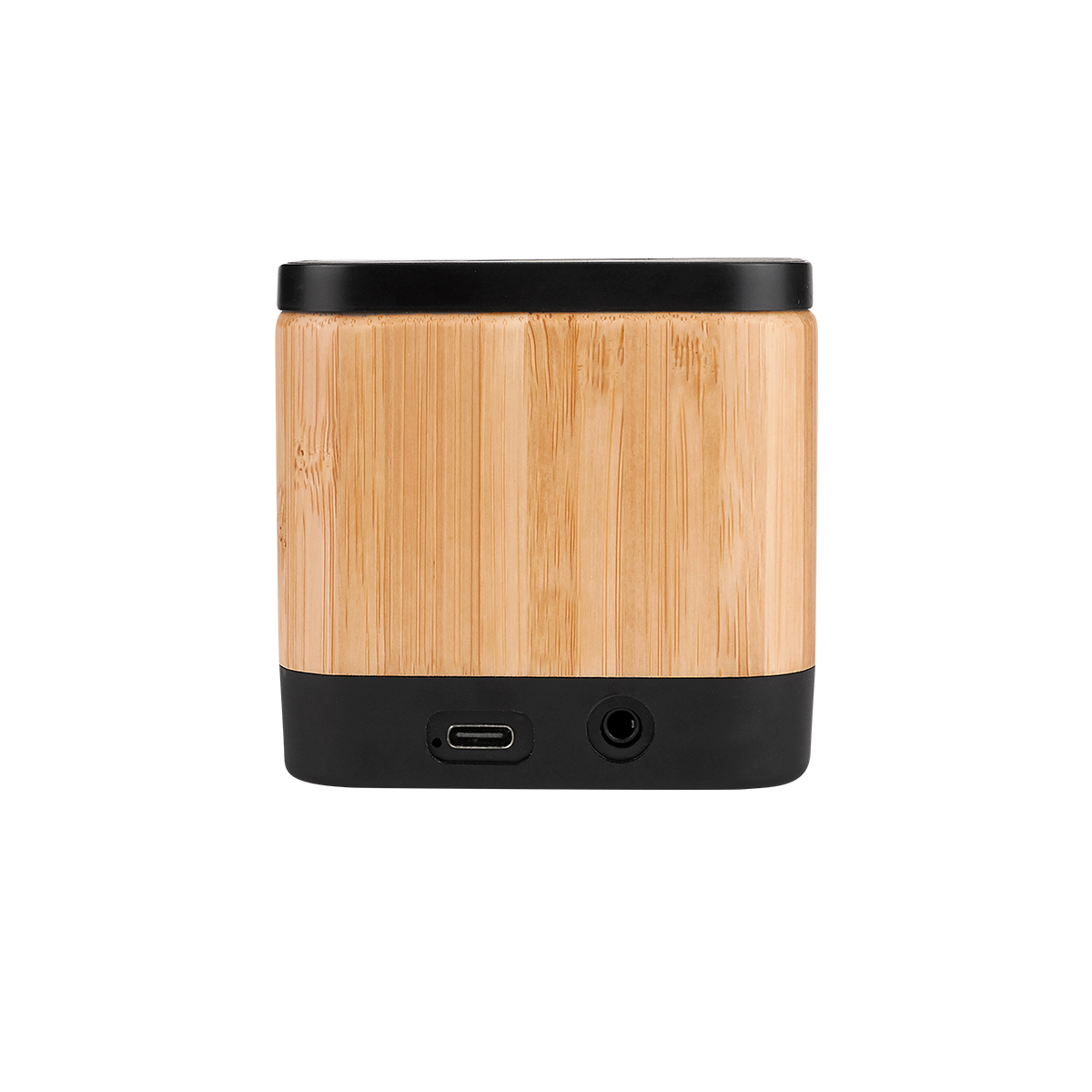 Bocina bluetooth con batería recargable. Reproducción de música de 2 hrs aproximadamente. Controles integrados de llamadas, volumen y reproducción de audio. Rango de conexión de 10 metros. La base al estar conectada, funciona como cargador inalámbrico de smartphone. Incluye cable cargador USB.