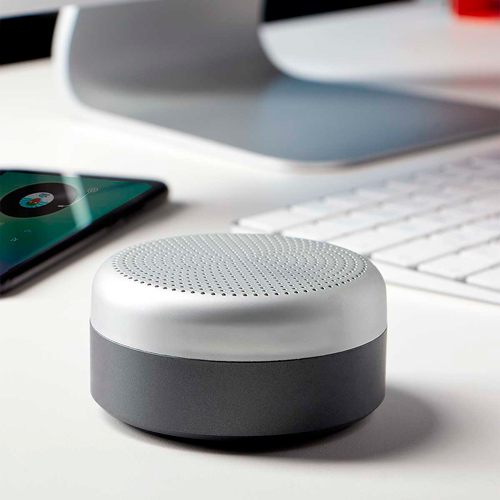 Bocina bluetooth con batería recargable. Reproducción de música de 2 hrs aproximadamente. Controles integrados de llamada, volumen y reproducción de audio. Función manos libres. Incluye cable cargador USB.