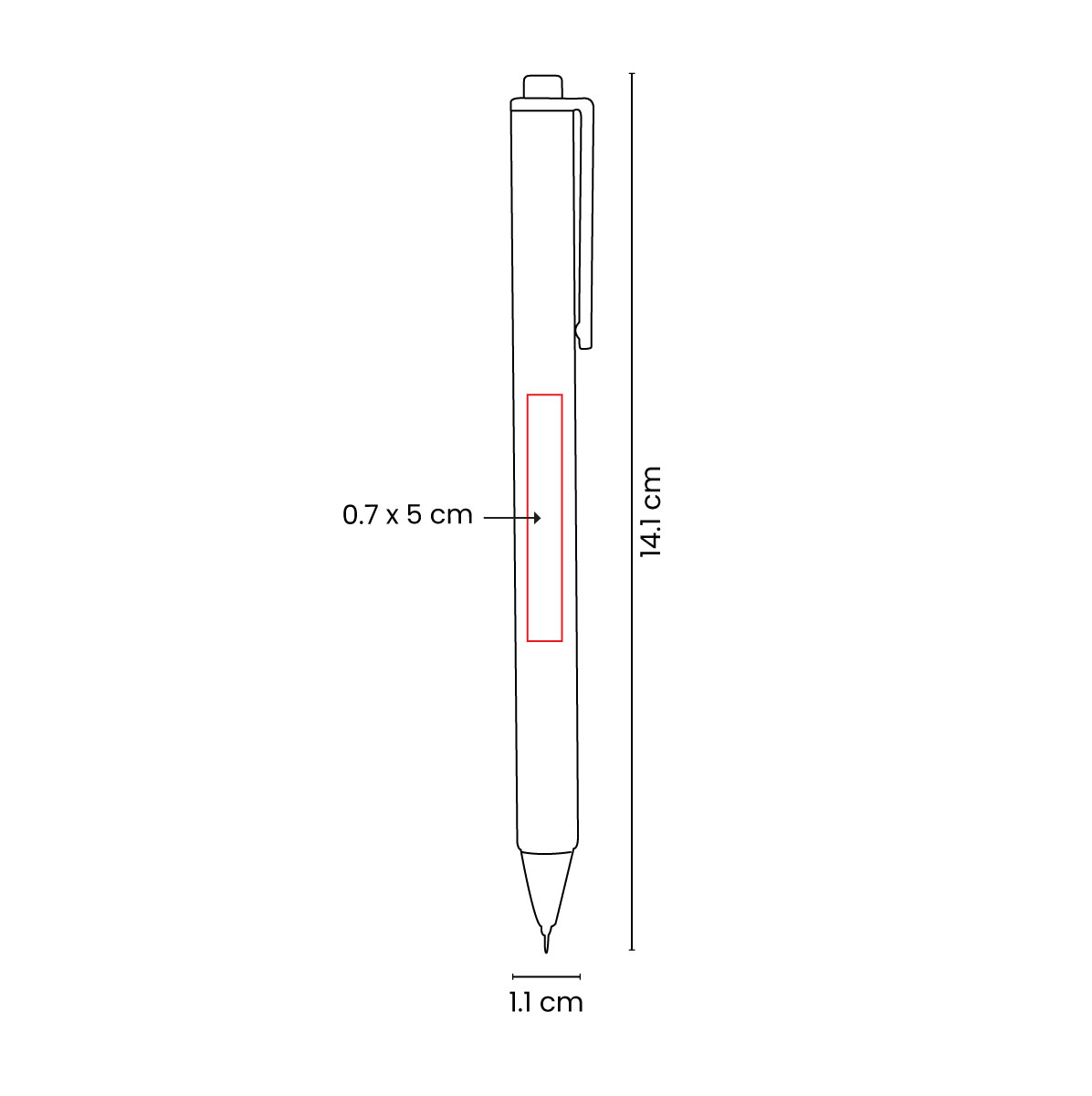 🎨 Área de impresión: 0.6 x 5 cm Barril / 0.5 x 3.5 cm Clip