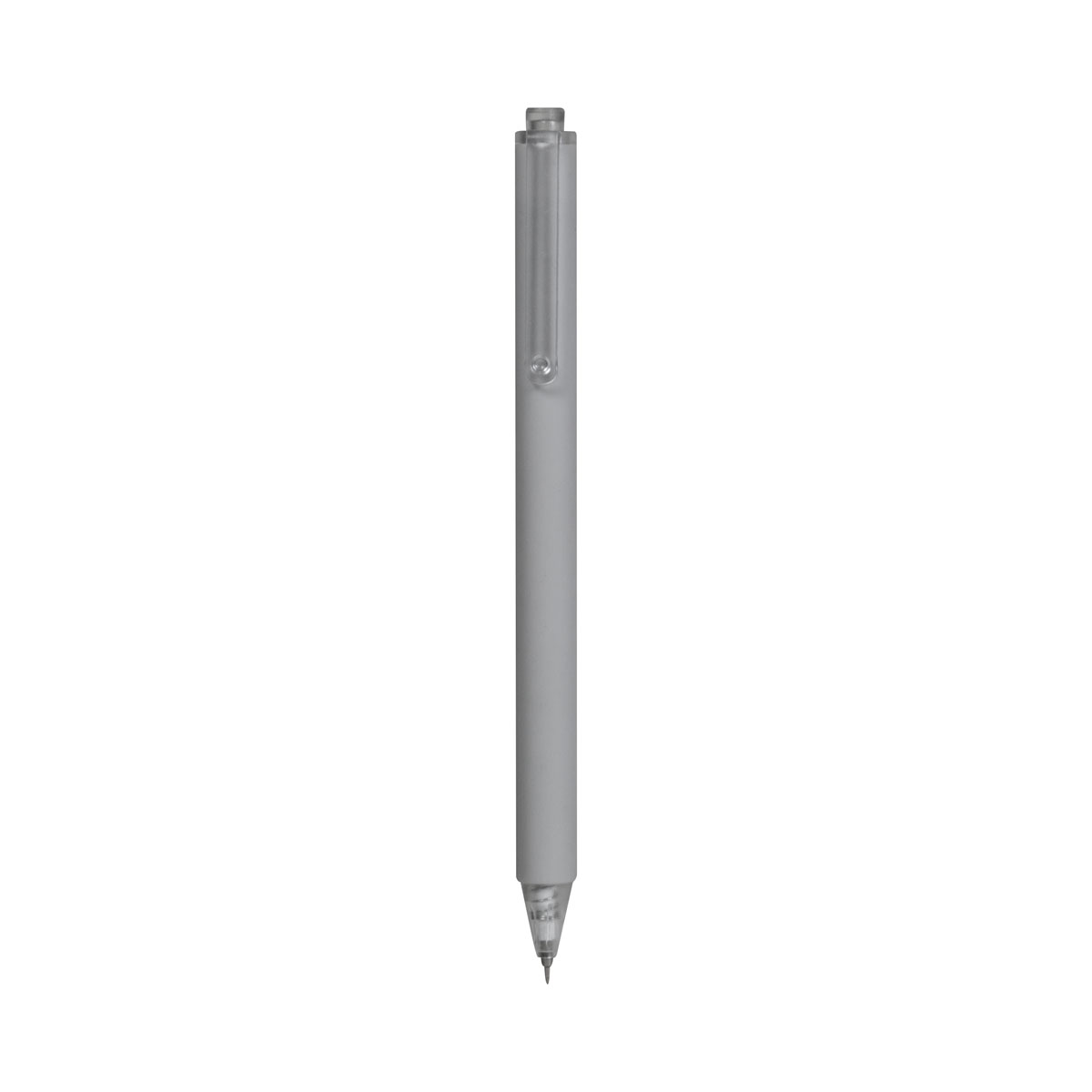 Bolígrafo de punto fino con terminado tipo rubber. Mecanismo pulsador.