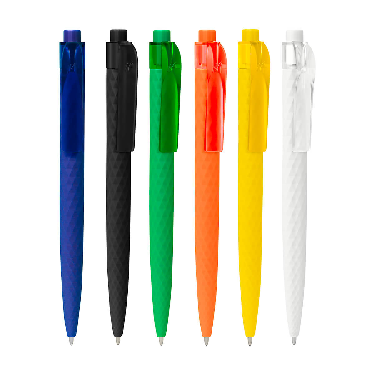 Bolígrafo con cuerpo en textura diamante. Mecanismo pulsador.