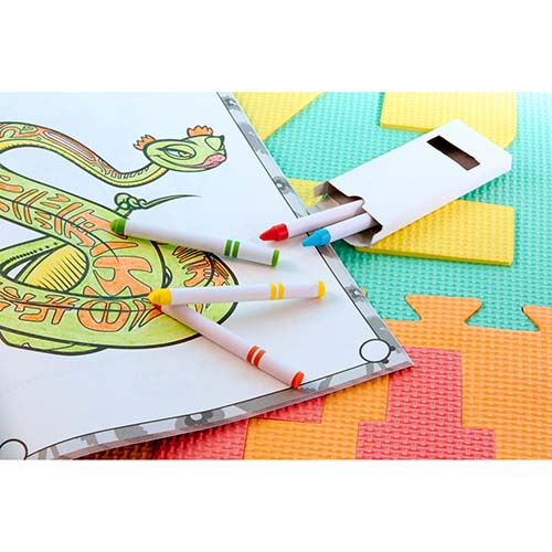 Descripcion: Caja de cartón con 5 crayones de varios colores.