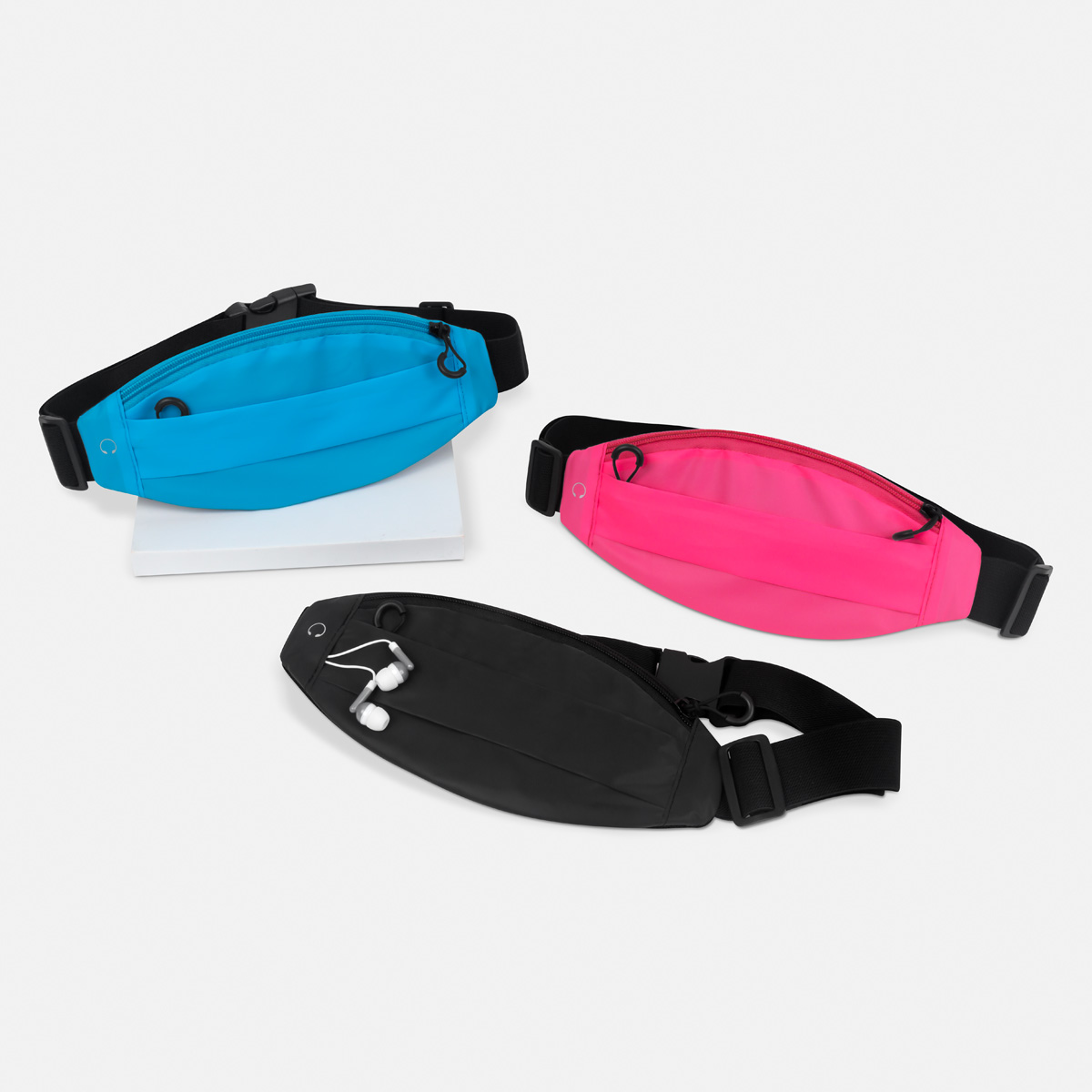 Cangurera deportiva perfecta para los amantes del running. Su compartimento principal tiene un espacio para smartphone e incluye una apertura para audífonos con cable. El compartimento frontal es ideal para objetos pequeños. Su correa ajustable con broche de plástico te permite llevarla cómodamente en la cintura sin afectar tu movilidad durante el entrenamiento al aire libre.