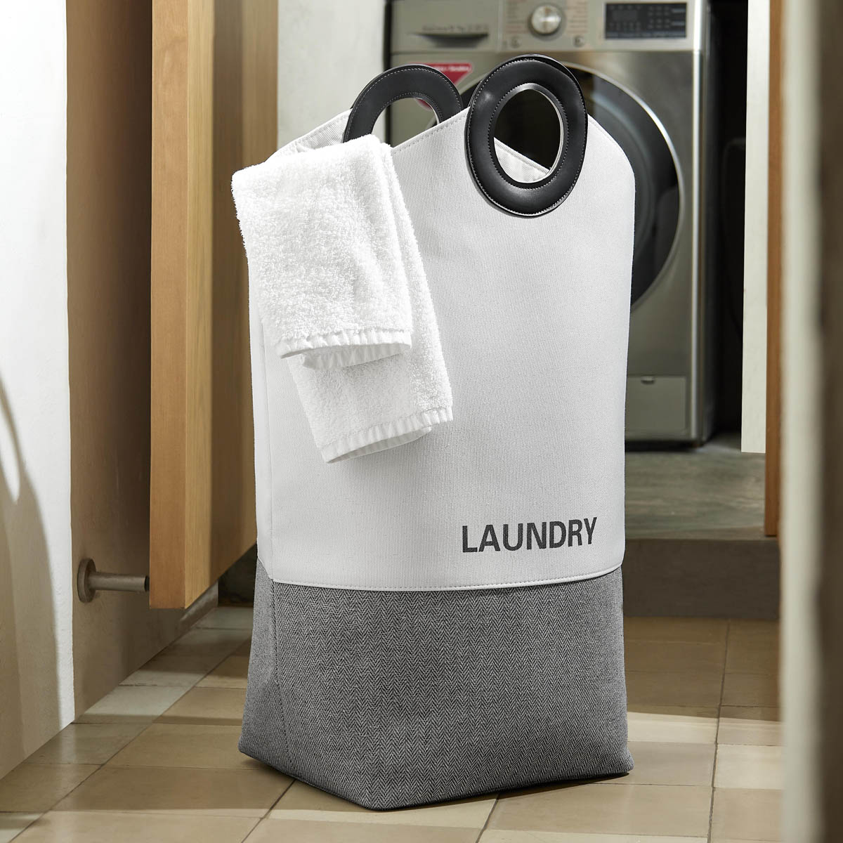 Cesto que combina materiales lisos y texturizados aportando un toque moderno y elegante. Sus asas de curpiel no solo ofrecen un agarre cómodo, sino que también realzan su apariencia sofisticada. Ideal para guardar ropa o almacenar textiles. Este cesto no solo es funcional, sino que también añade un elemento decorativo a cualquier habitación.