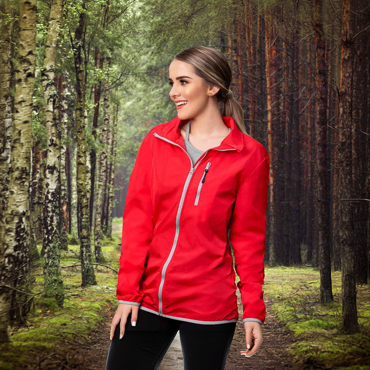 Descripcion: Chamarra deportiva ligera plegable con funda en cierre. 100% Poliéster.