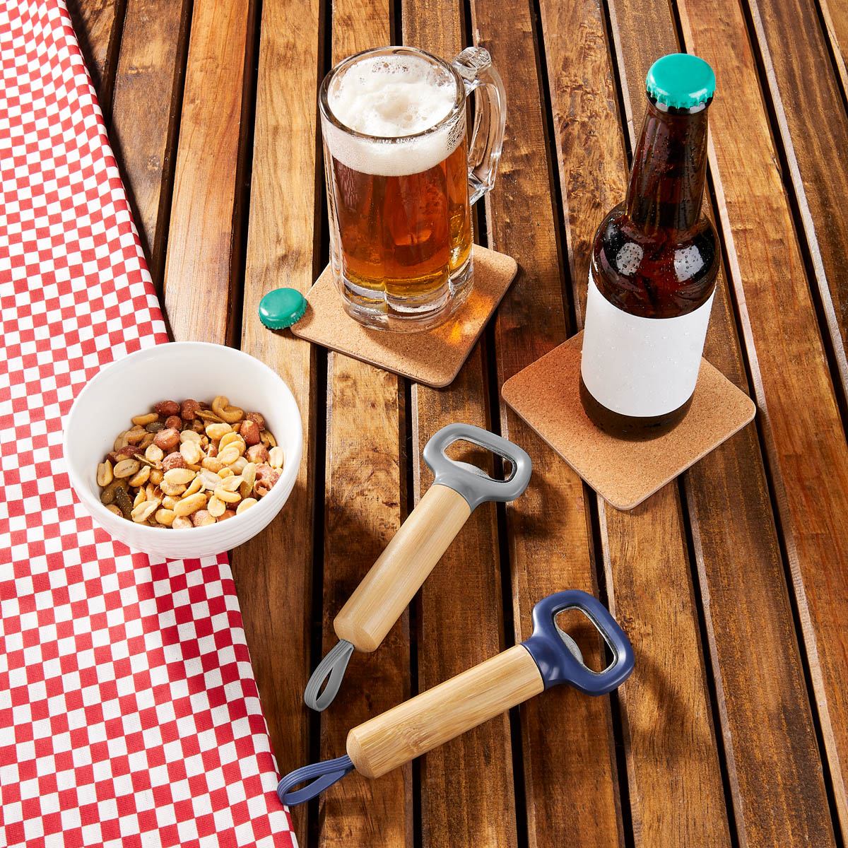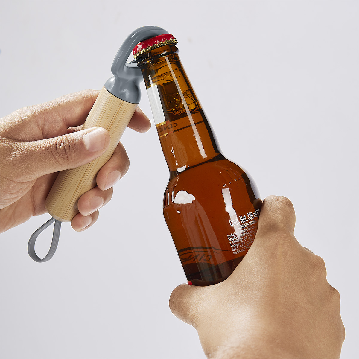 Descripcion: Destapador con mango sólido ergonómico. Hecho de bambú y acero inoxidable de alta calidad, no se rompe ni deforma fácilmente. Incluye asa de silicón para que pueda ser enganchado y tenerlo siempre al alcance.