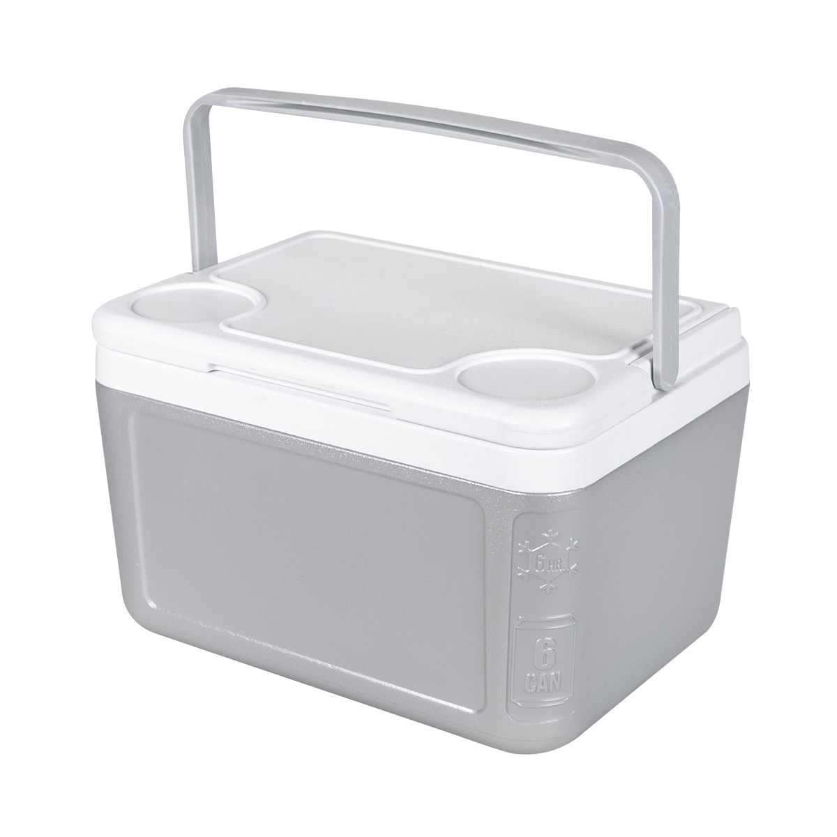 Capacidad para 6 latas. Moldura en la parte superior que sirve como porta latas. Asa superior de fácil agarre.