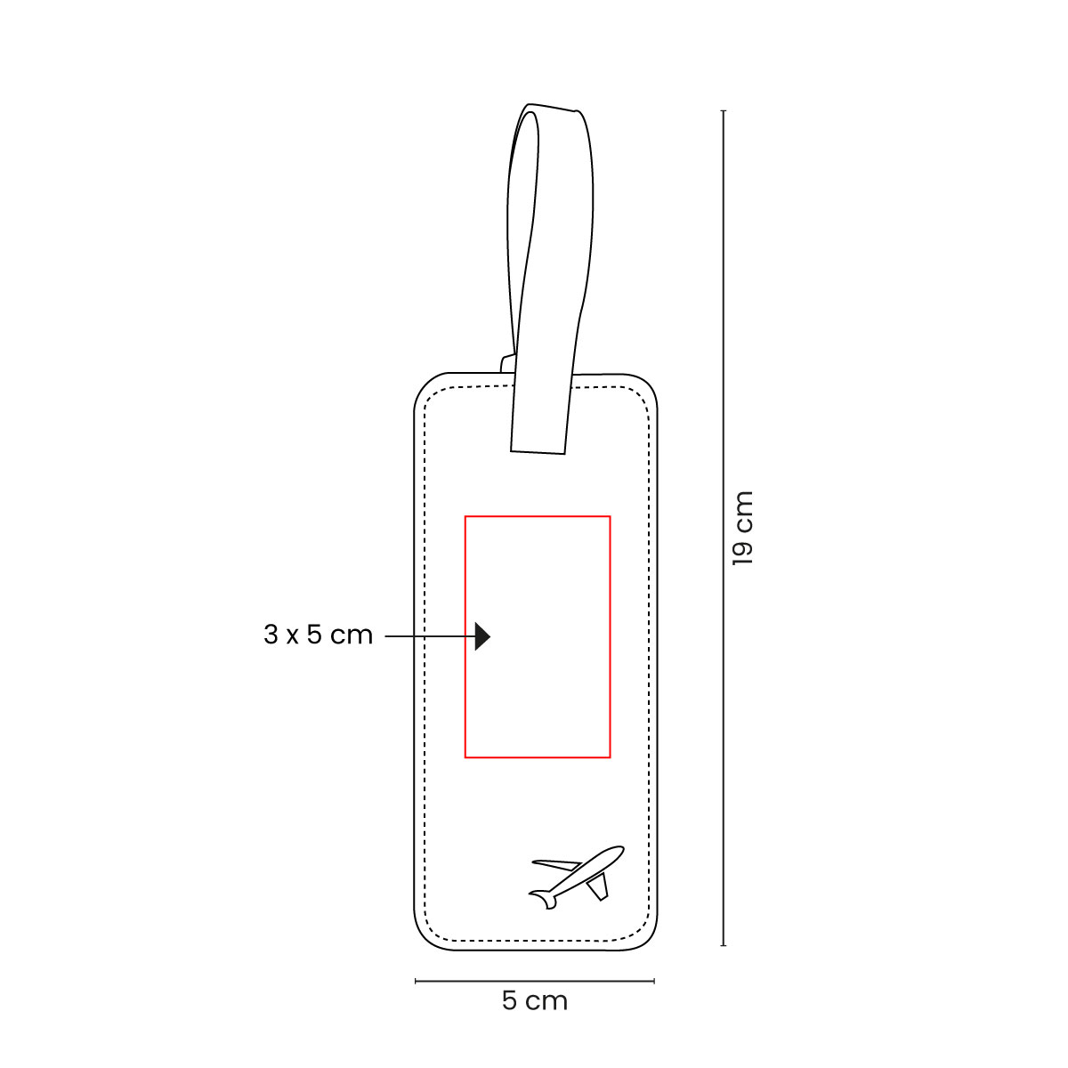 Identificador con etiqueta para maleta. Ideal para viajeros que buscan un accesorio elegante y funcional. Incluye cartón para añadir datos personales y correa ajustable, fácil de colocar y quitar.