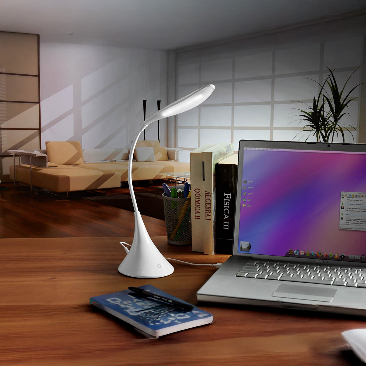 12 LEDS. Cuello flexible y ajustable. Funciona con baterías y con cable USB. Intensidad de luz ajustable. No incluye baterías (3 pilas AA).