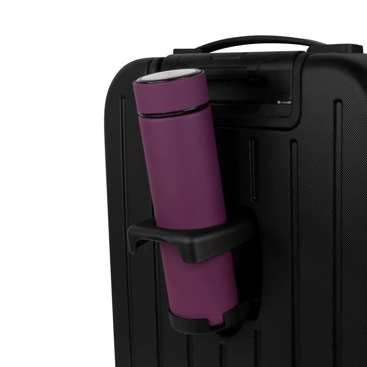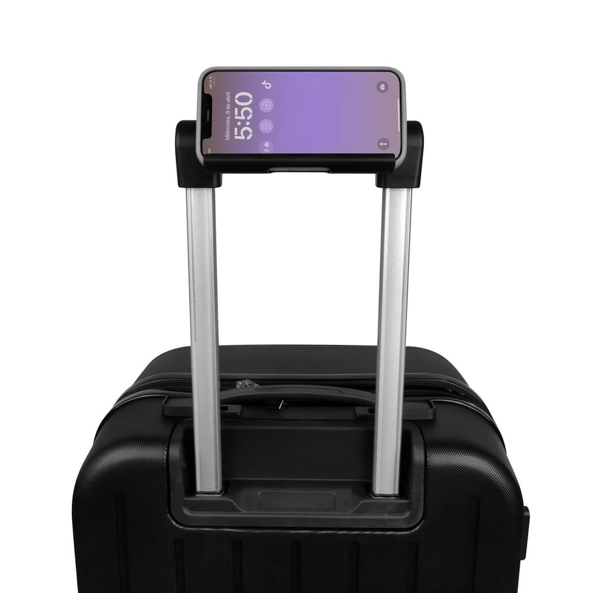 Maleta carry-on con dimensiones aprobadas para cabina. Ideal para viajes cortos o de negocios. Compartimento frontal para lap top que permite un fácil acceso, sin necesidad de abrir toda la maleta. Su innovador diseño, Incluye un porta bebidas plegable en la parte trasera y un práctico gancho portabolsas en la parte lateral, ideal para las compras de último momento. Cuenta también con un soporte para smartphone integrado en el asa del trolley, para un práctico manejo de dispositivos portátiles. Incluye candado de combinación para mayor seguridad. Cuenta con cuatro ruedas de giro suave y asa trolley retráctil con dos niveles ajustables, que facilitan su adecuada movilización.