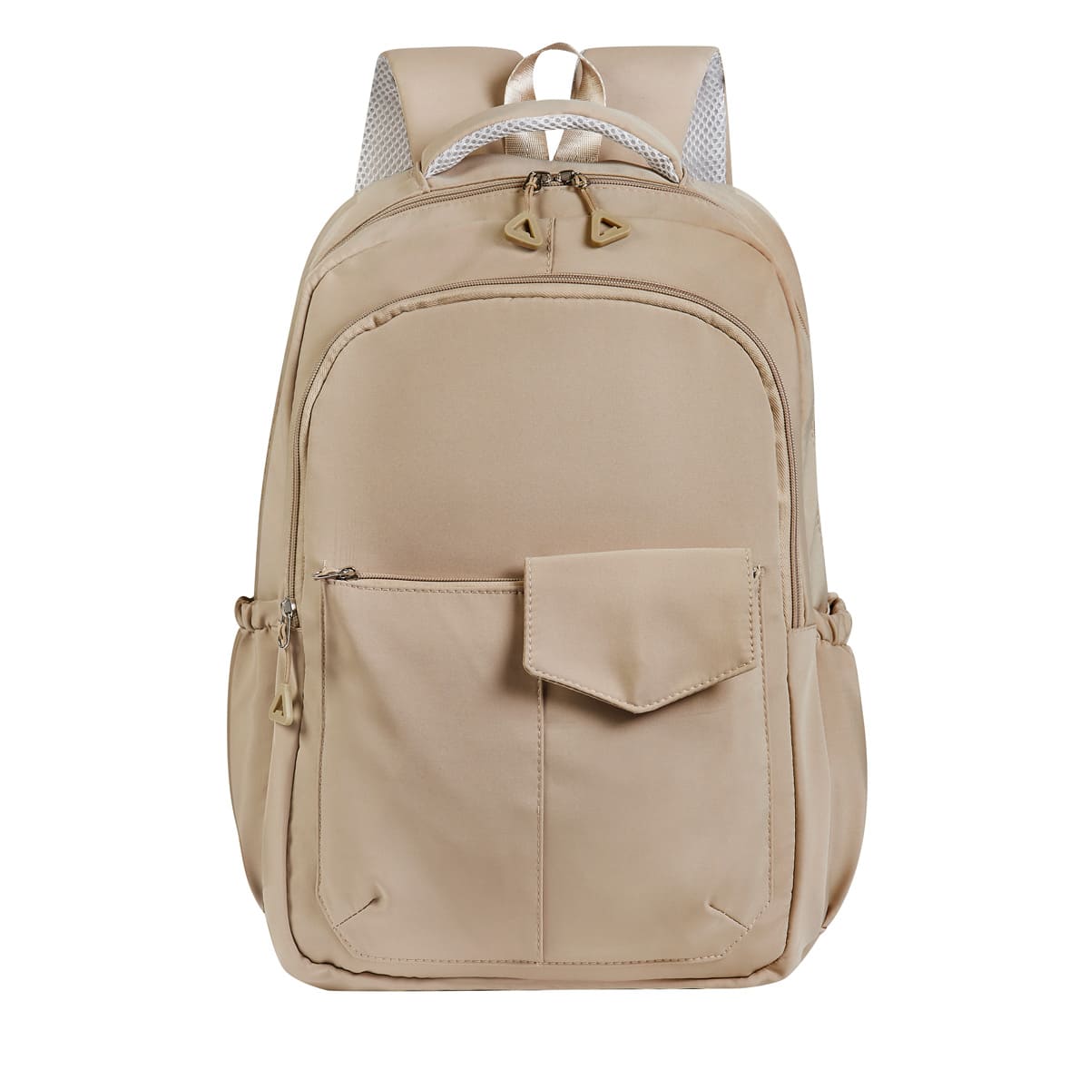 Descripcion: Mochila estilo casual. Su bolsa principal cuenta con un compartimento especial para laptop de hasta 15", además incluye bolsillos organizadores para mantener tus objetos personales ordenados y al alcance de tu mano. Al frente tiene dos bolsos con cierre y una solapa decorativa con broche magnético que le añade un toque de elegancia y practicidad. También cuenta con dos bolsillos laterales para llevar botellas u otros artículos esenciales. Su asa superior te permite llevarla cómodamente; mientras que las asas para hombro acolchadas ofrecen un soporte ergonómico.