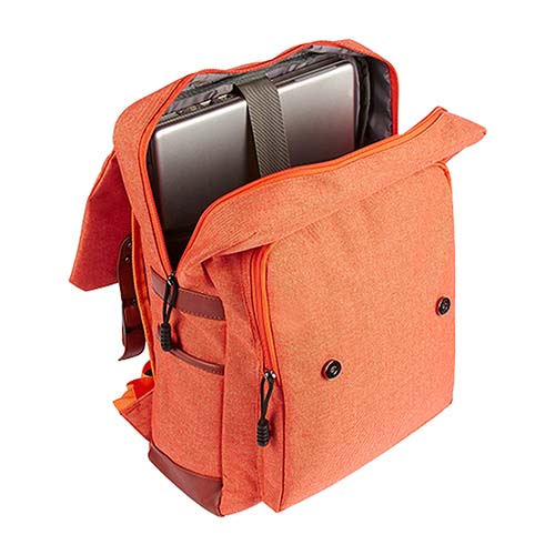 Bolsa principal y frontal con cierre. Compartimento para laptop hasta de 15″. 2 bolsas laterales. Solapa frontal con broches de imán estilo hebilla. Cuenta con asa de agarre superior.