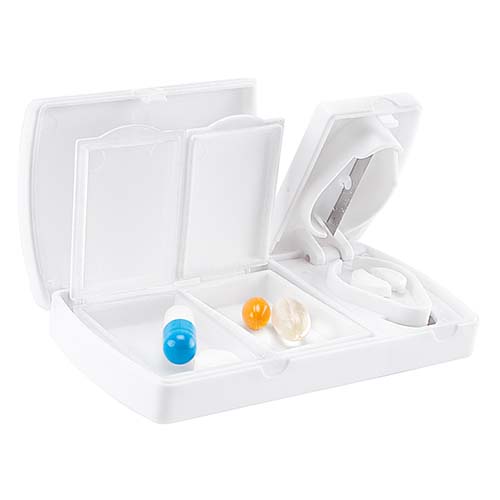 Pastillero con corta pastillas y 2 compartimentos separables.