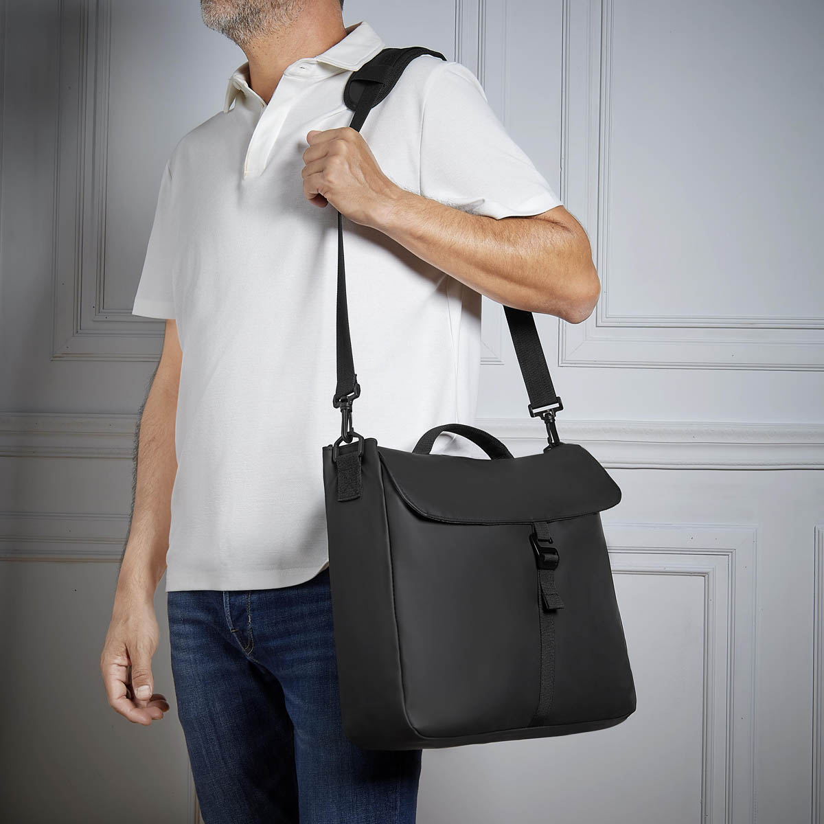Elegancia y funcionalidad se unen en este portafolio. Con un compartimiento principal seguro, cerrado por un gancho metálico, ofrece espacio para una laptop de hasta 15″. Su asa para hombro con almohadilla integrada, brinda una mayor comodidad al transportarla. Esta mochila es la combinación perfecta de estilo y practicidad para el profesional moderno.