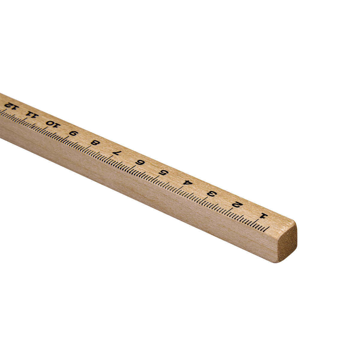 Descripcion: Regla de madera para niños con escala de 30 centímetros contemplando el borde inicial y final. La madera es un producto natural el cual puede presentar variaciones en tonalidades y vetas.