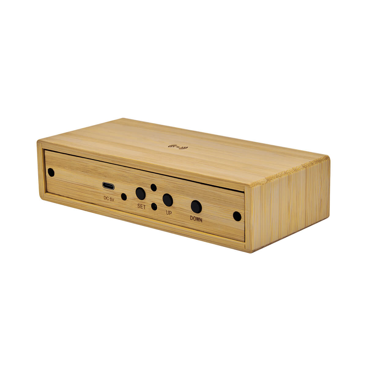 Descripcion: Reloj digital con carga inalámbrica de 10W. Display indicador de hora y temperatura. Tres modos de display para elegir y 4 niveles diferentes de brillo. Función de alarma. Carga por medio de cable tipo C incluido (1 m de largo). Este producto por ser últimas piezas puede presentar alguna variación, no se aceptan devoluciones.