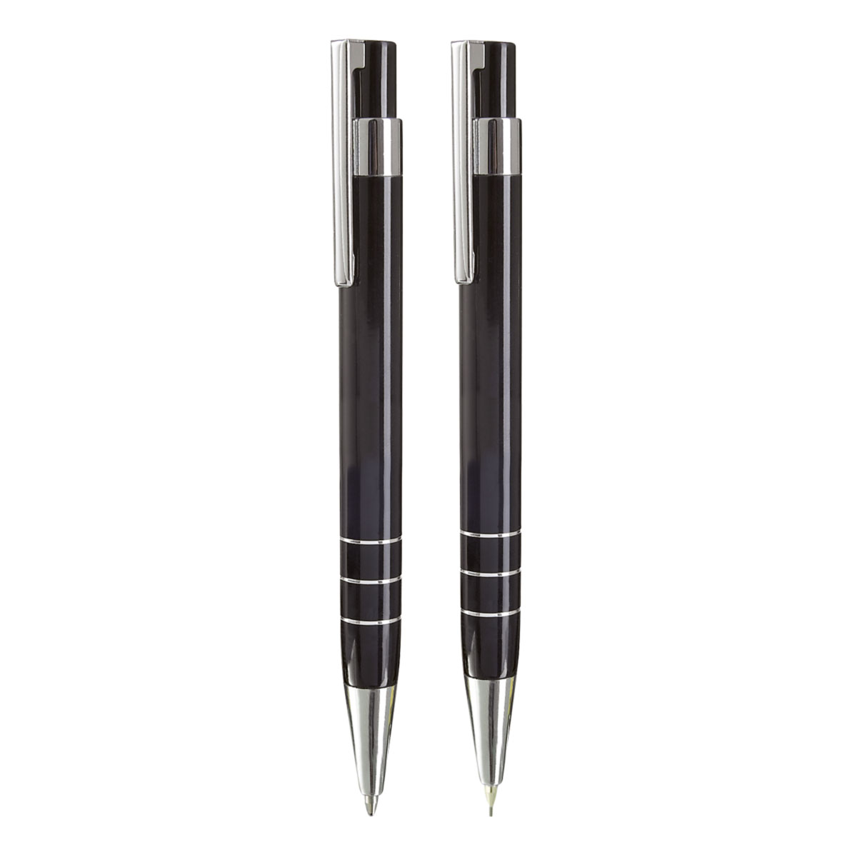 Bolígrafo y lapicera 0.5 mm. Mecanismo pulsador. Incluye estuche con imán para cerrado.