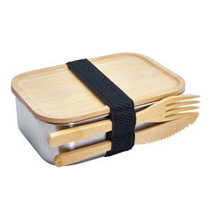 Set de lonchera metálica. Incluye contender de alimentos con tapa a presión y elástico para cerrar, 1 tenedor y 1 cuchillo. Termo con doble pared metálica, sellado al vacío, tapa con cierre de rosca y asa de metal. Producto no apto para microondas, ni lavavajillas. La madera es un producto natural el cual puede presentar variaciones en tonalidades y vetas.