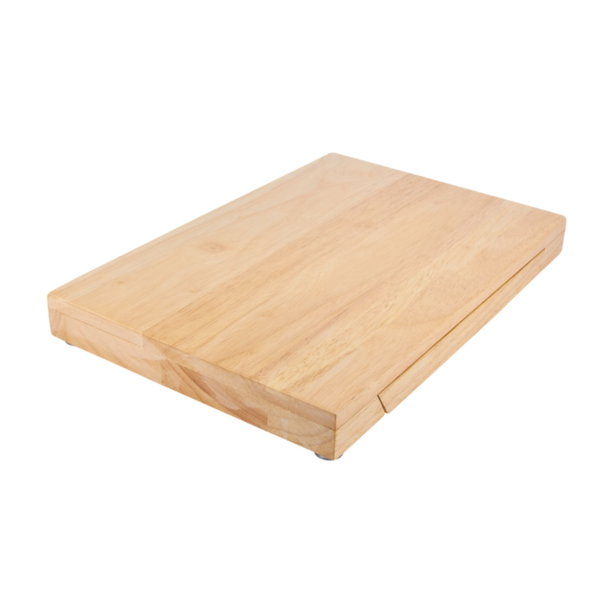 Set con 1 tabla y base deslizable con 3 cuchillos y 1 tenedor para quesos. La madera es un producto natural el cual puede presentar variaciones en tonalidades y vetas.