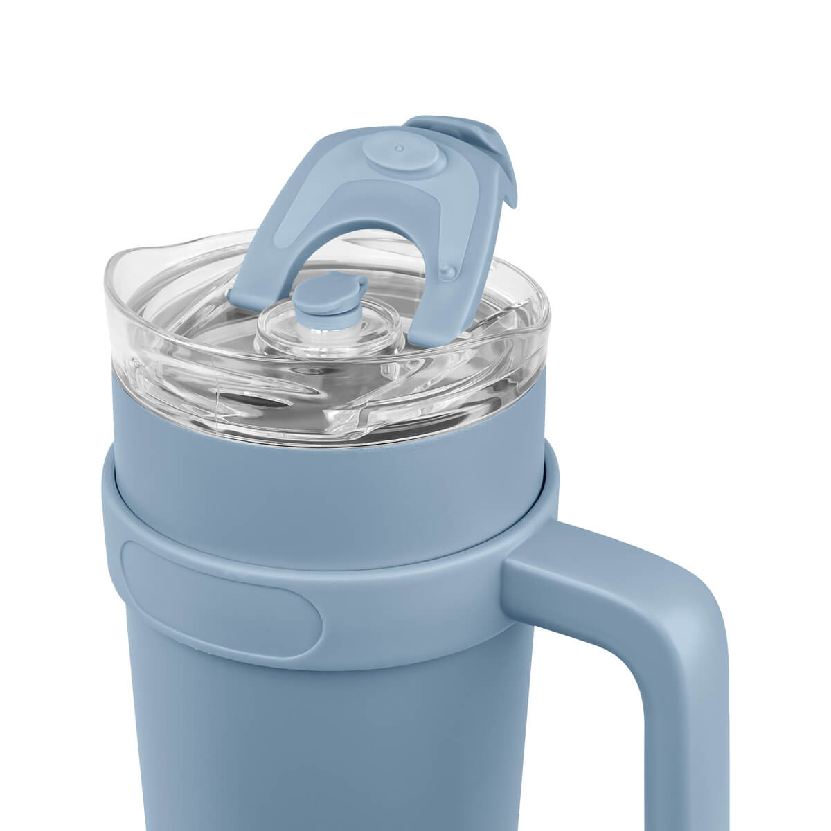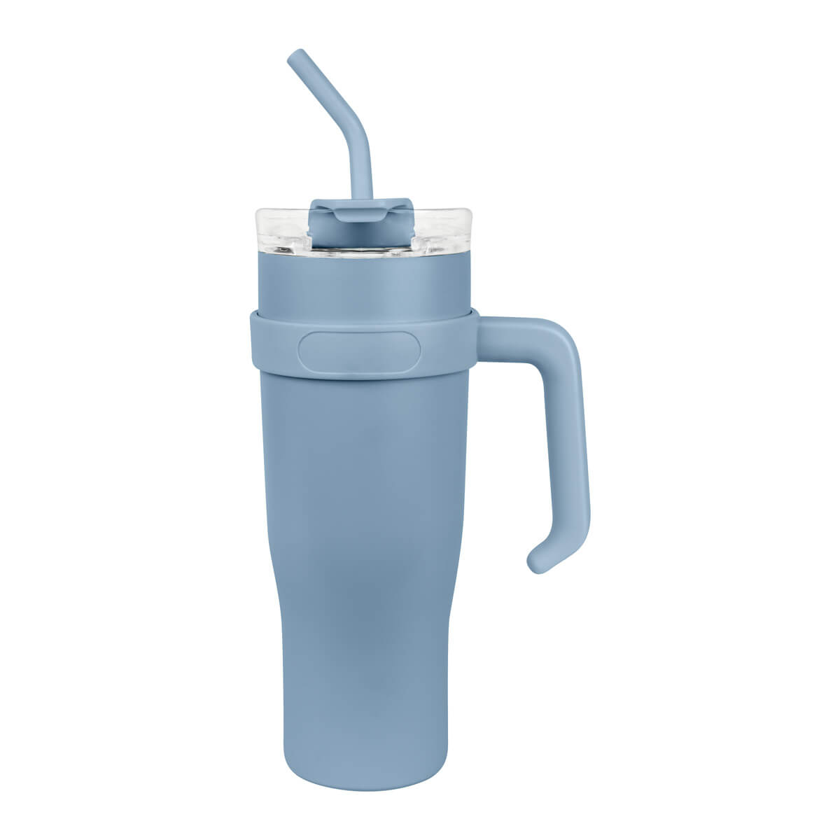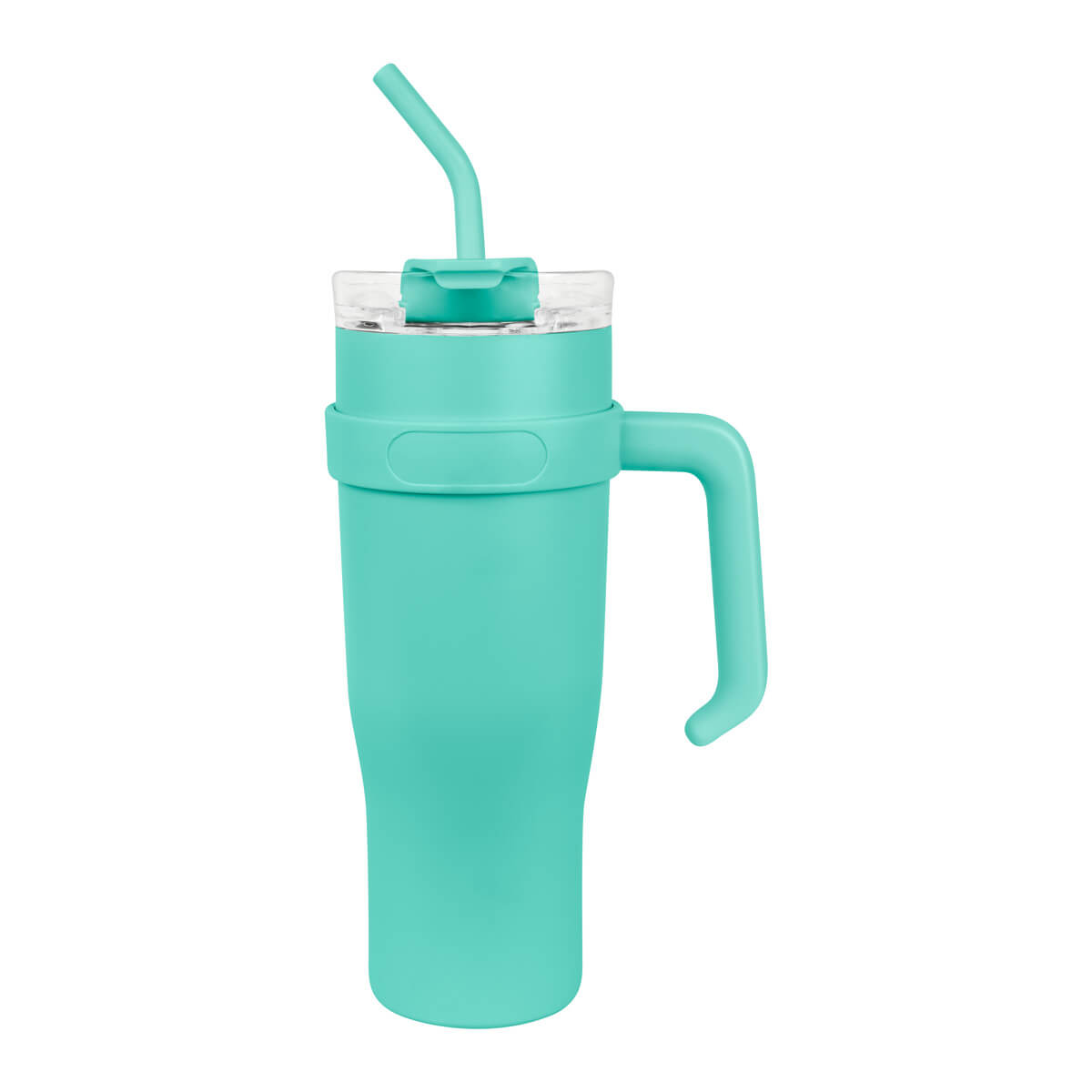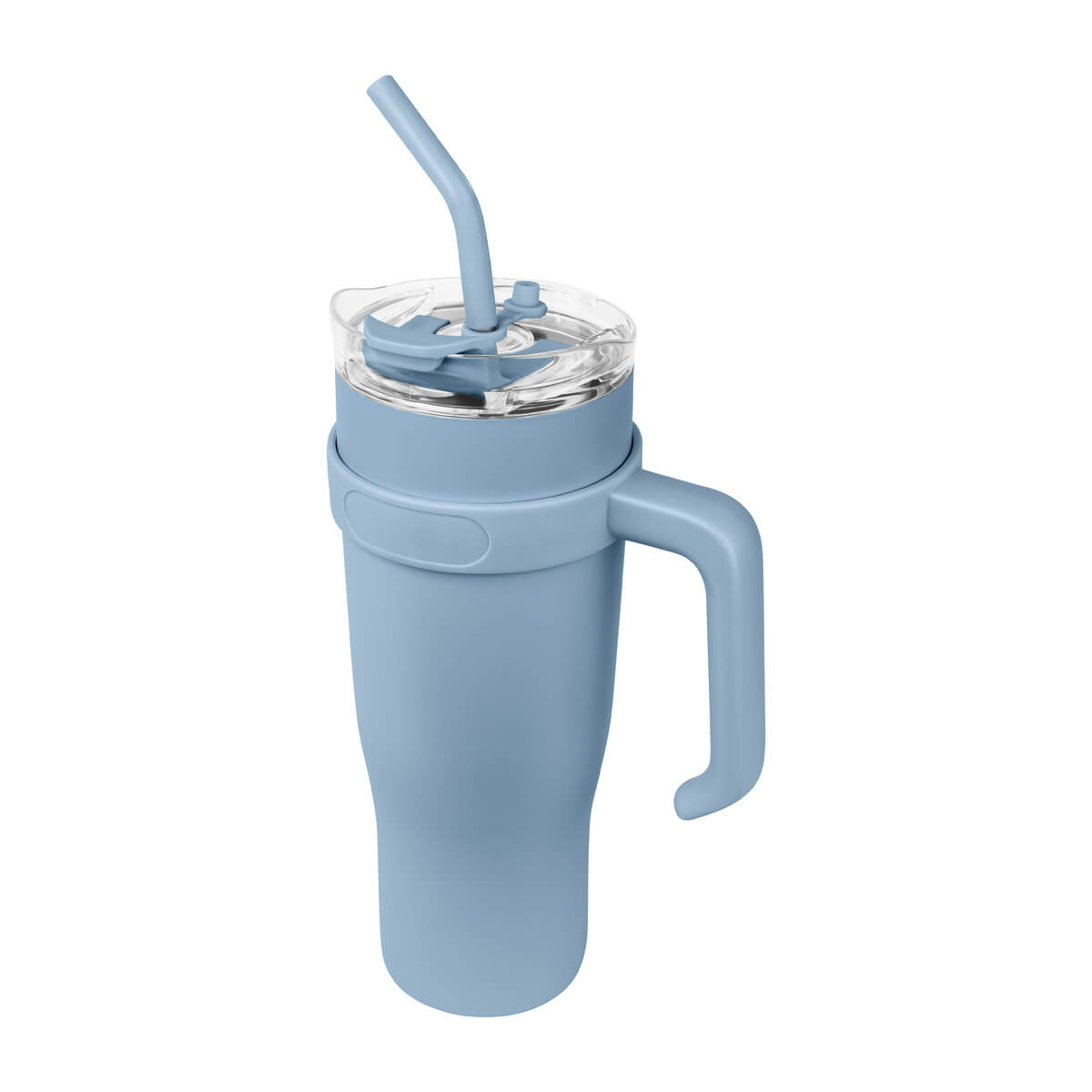 Termo doble pared. Cerrado al vacío. Pared interna y externa acero inoxidable. Cuerpo con terminado rugoso. Tapa de plástico y sobretapa con sistema push, incluye una ranura para popote con tapón de silicón. Su cuerpo de amplia capacidad lo hace perfecto para compartir o disfrutar de varias tazas de tu bebida favorita, además su asa ergonómica permite un transporte fácil y cómodo. Mantiene la temperatura caliente por 12 hrs y la temperatura fría por 20 hrs. Capacidad de 40 Oz. Base de 8.2 cm de diámetro. Incluye popote metálico con boquilla de silicón y caja individual.