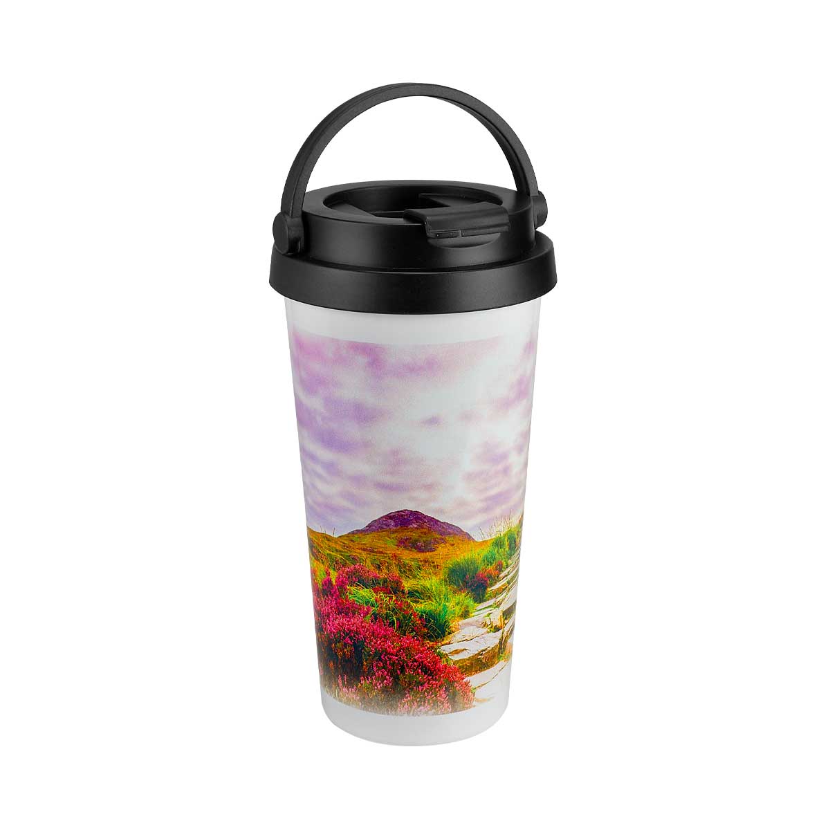 Termo para sublimar doble pared. Cerrado al vacío. Pared interna y externa de acero inoxidable. Tapa de plástico con válvula de seguridad y asa plegable. Mantiene temperatura caliente 6 hrs y temperatura fría 8 hrs aproximadamente. Incluye caja individual.