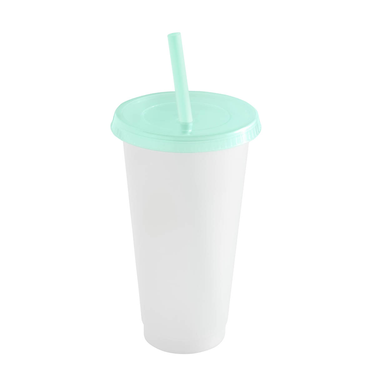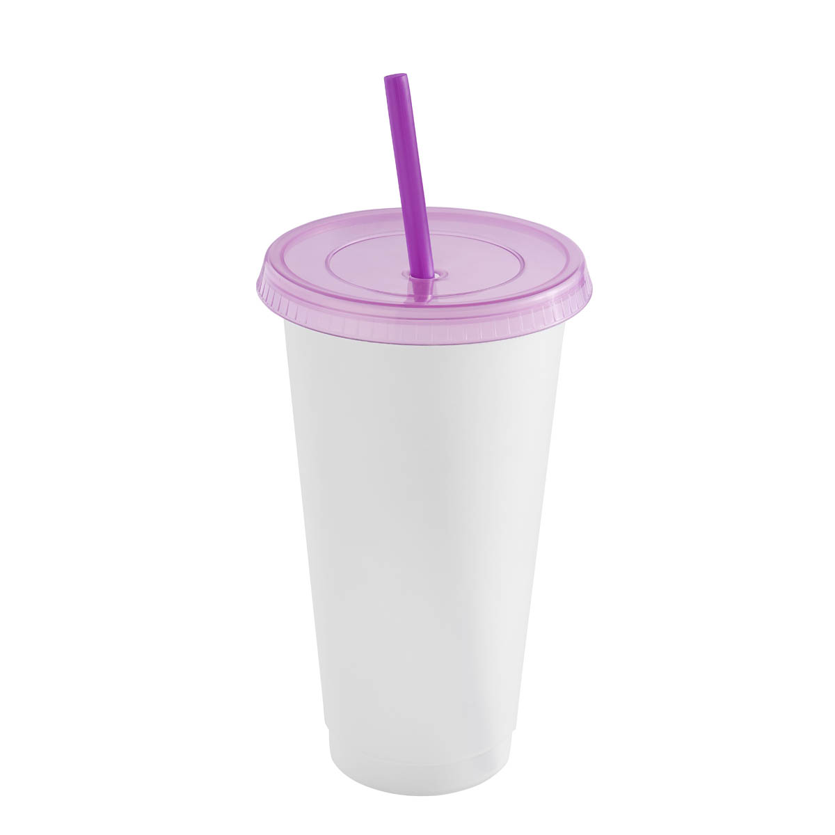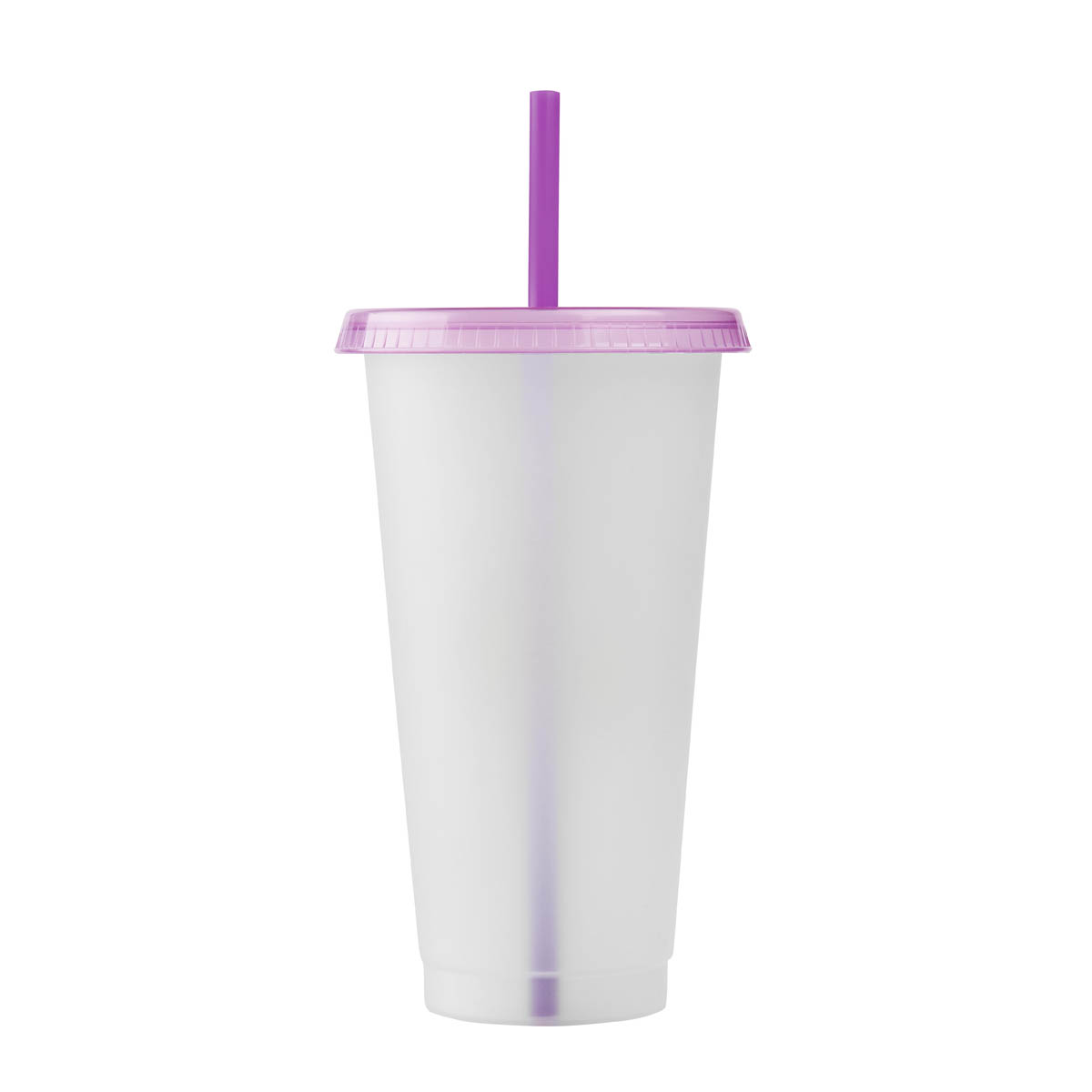 Vaso de plástico de una pared. Añade fantasía y diversión, con este vaso que cambia de color al verter bebidas frías. Su tapa y popote, coinciden con el tono que el vaso revelará al enfriarse, dando como resultado, un conjunto armonioso y divertido. Perfecto para quienes buscan una experiencia refrescante y visualmente atractiva en cada bebida. Capacidad 27 Oz. Base de 6.4 cm.