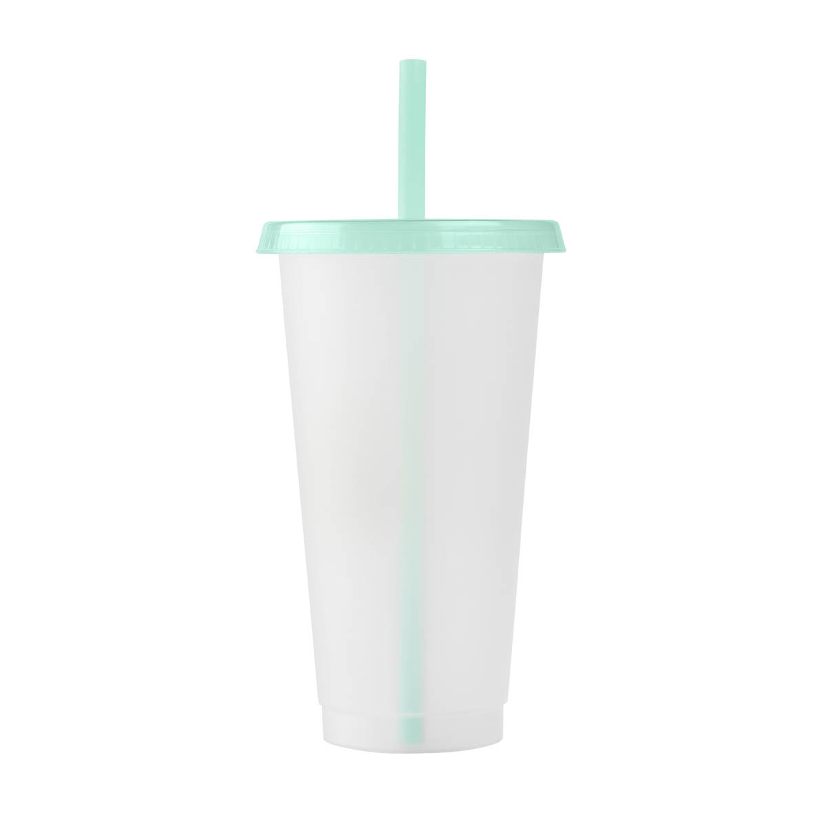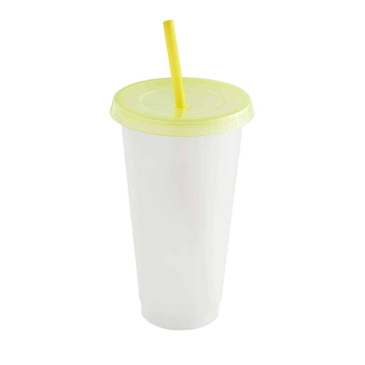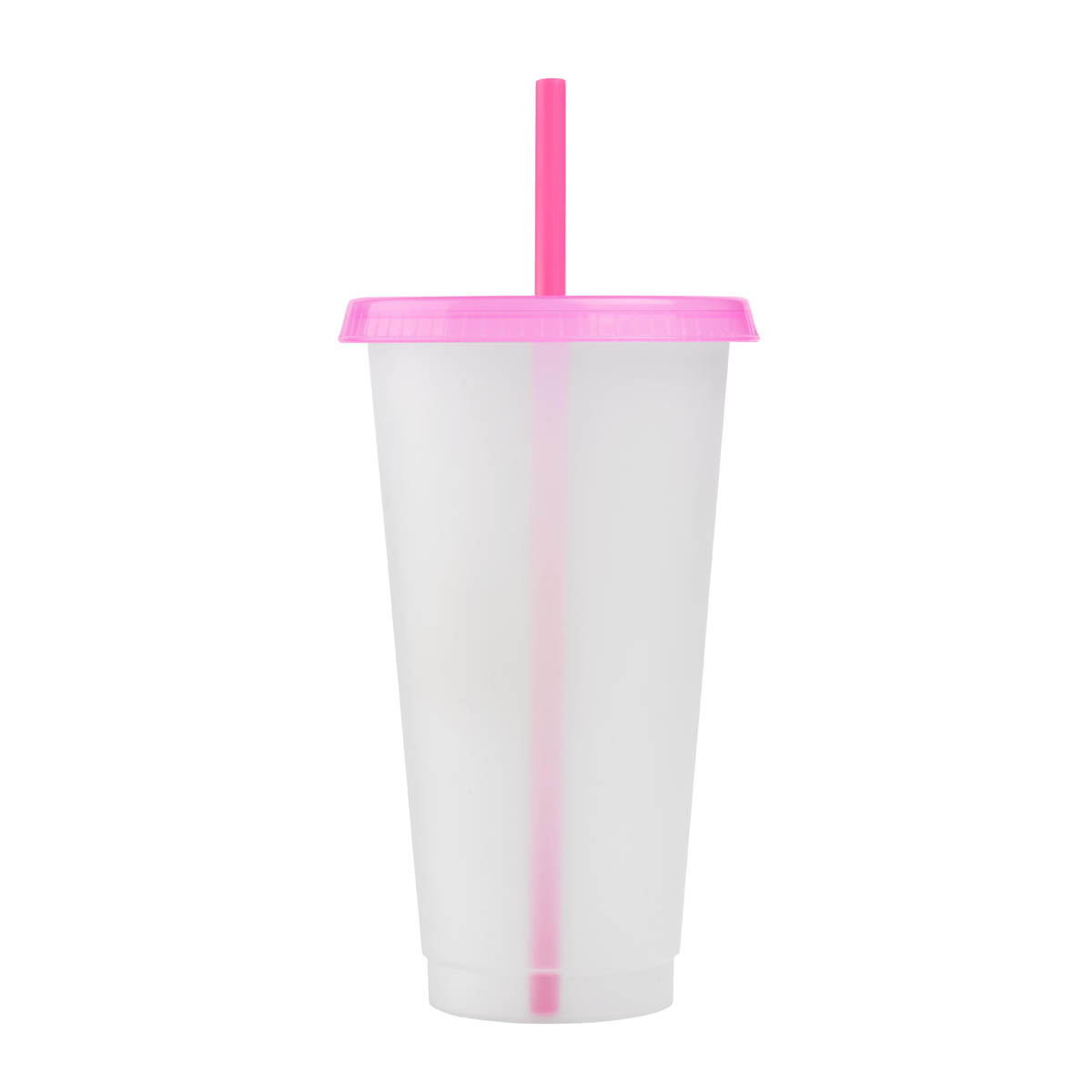 Vaso de plástico de una pared. Añade fantasía y diversión, con este vaso que cambia de color al verter bebidas frías. Su tapa y popote, coinciden con el tono que el vaso revelará al enfriarse, dando como resultado, un conjunto armonioso y divertido. Perfecto para quienes buscan una experiencia refrescante y visualmente atractiva en cada bebida. Capacidad 27 Oz. Base de 6.4 cm.