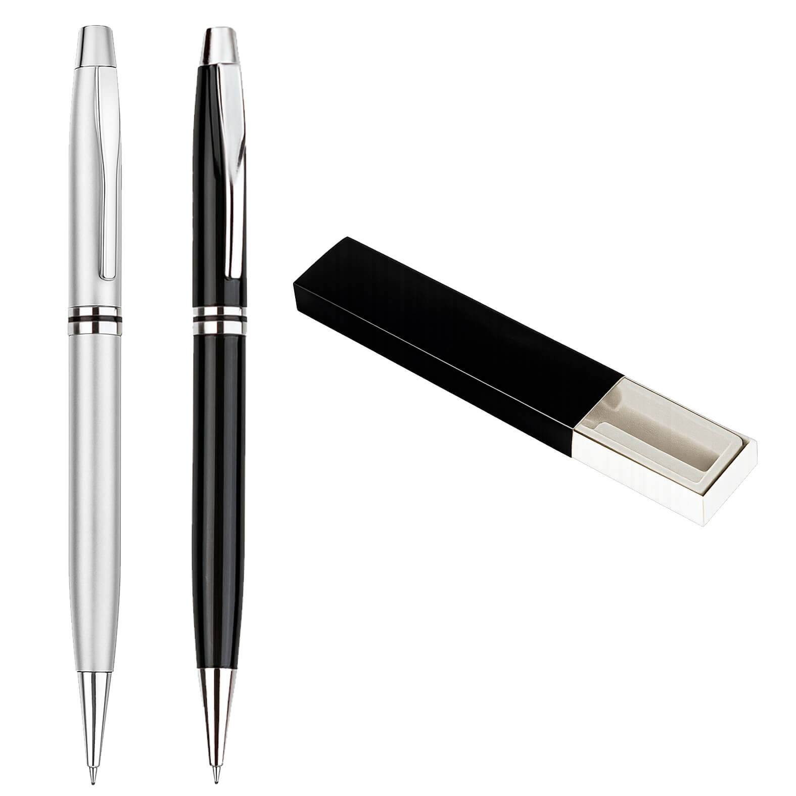 Bolígrafo metálico y mecanismo retráctil. Incluye estuche.