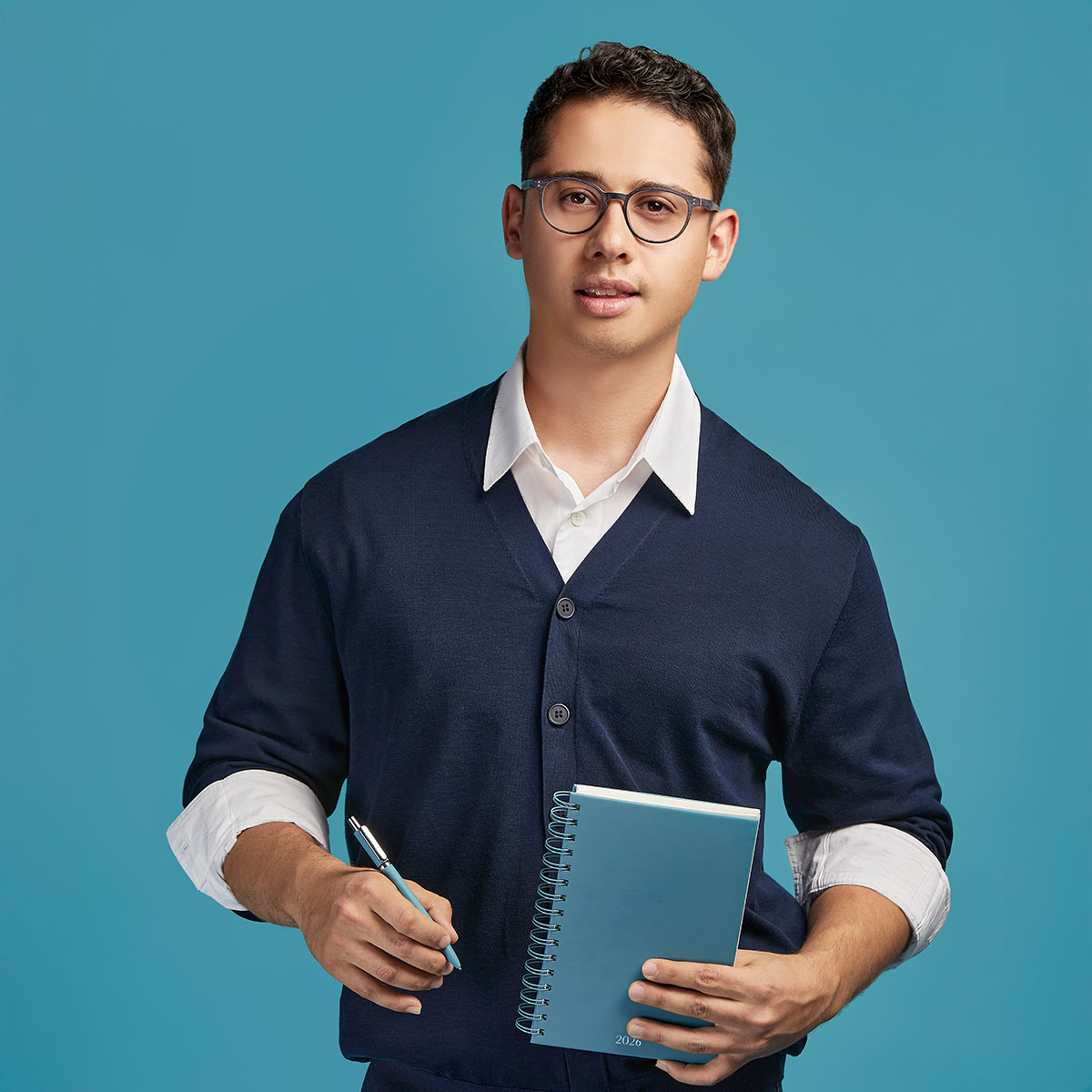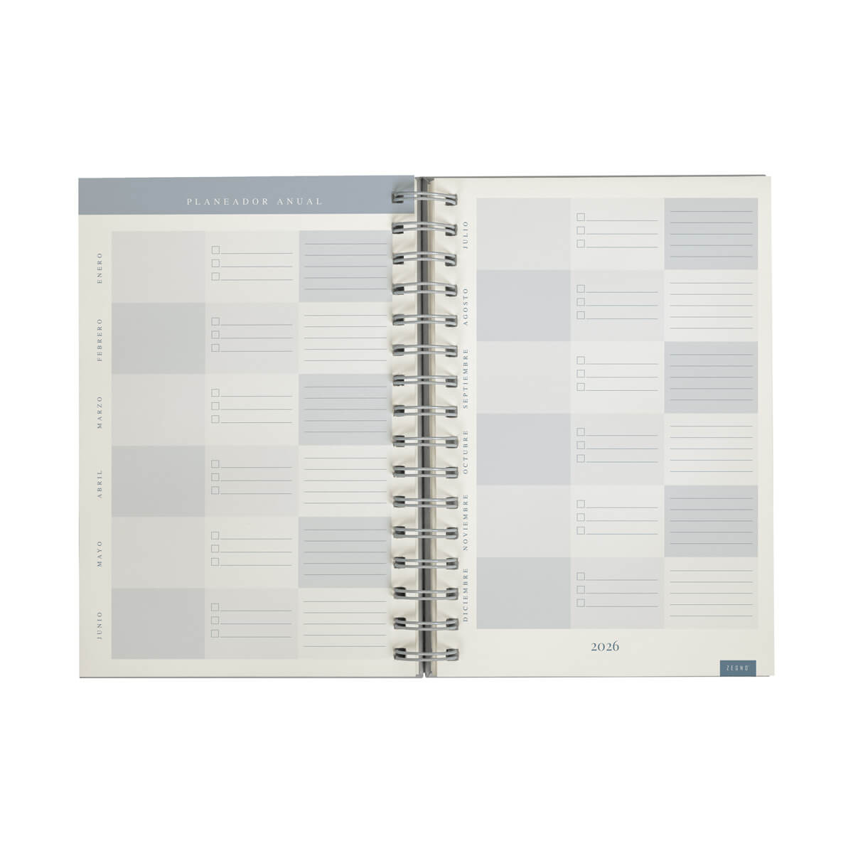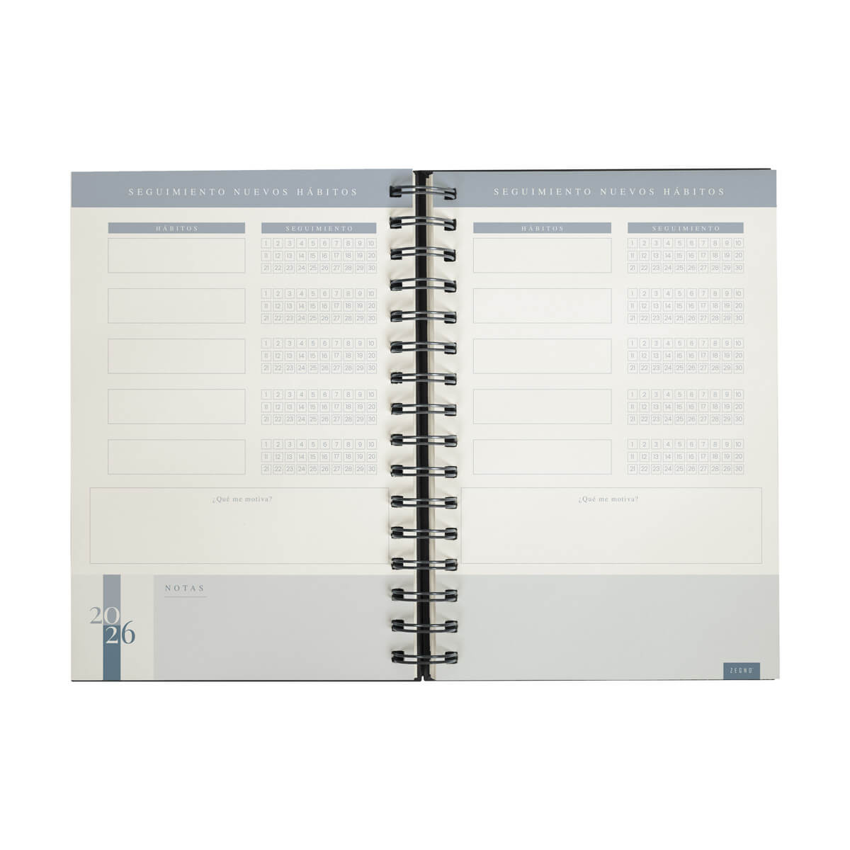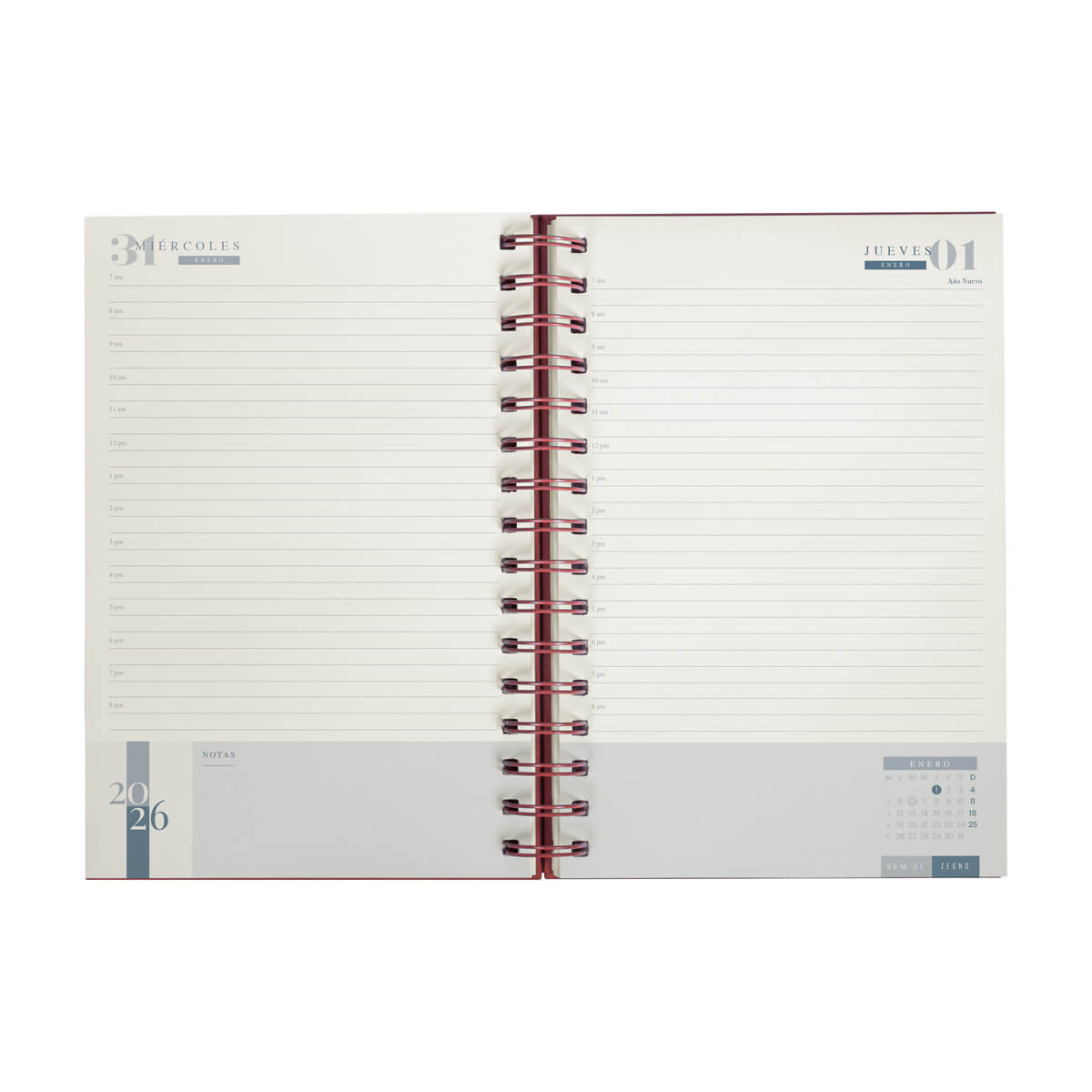 Agenda diaria con 174 hojas. Contiene datos personales, calendarios 2025-2026-2027, planeador 2026, seguimiento de nuevos hábitos y días festivos. Incluye bolígrafo metálico y caja individual tipo regalo. – AGSP 026