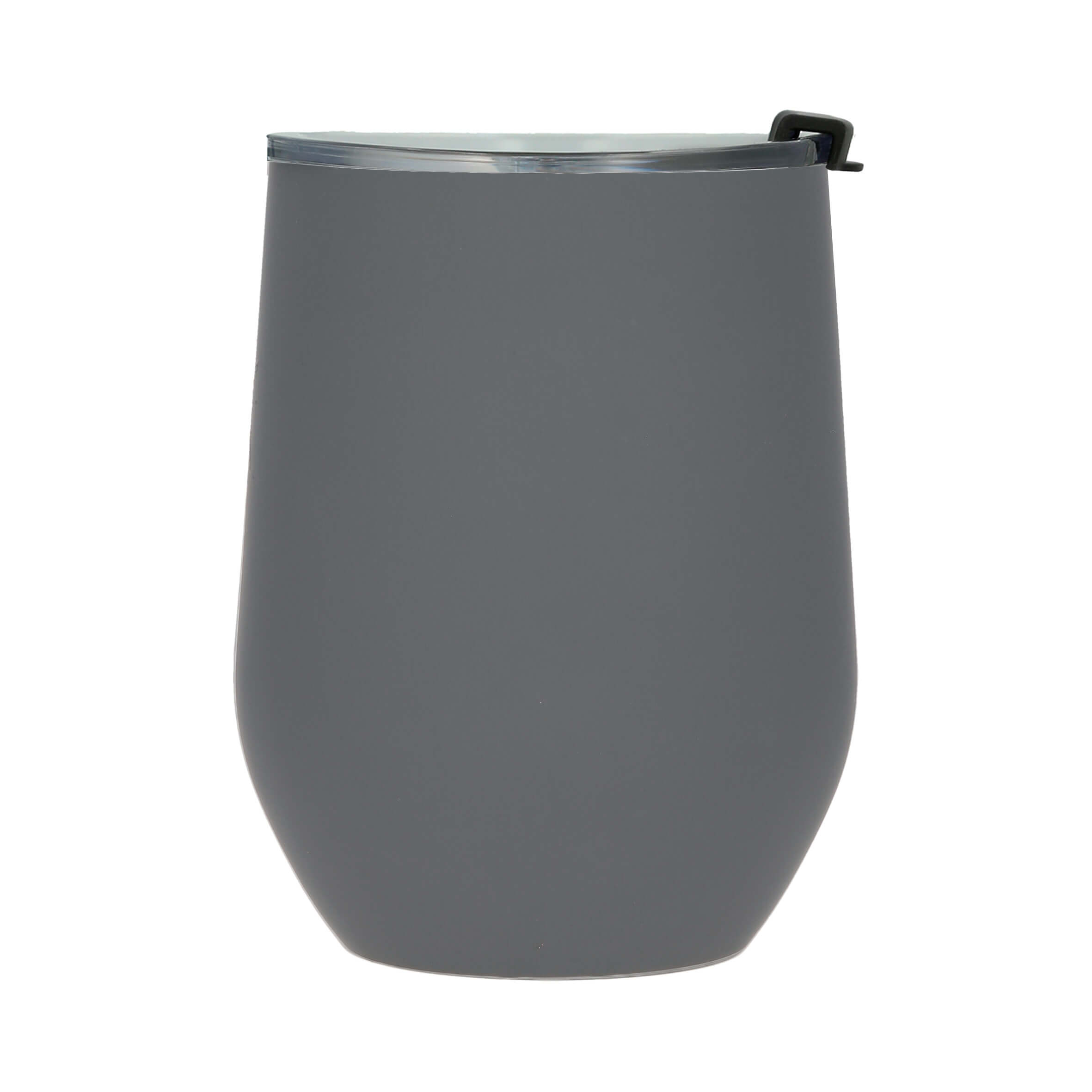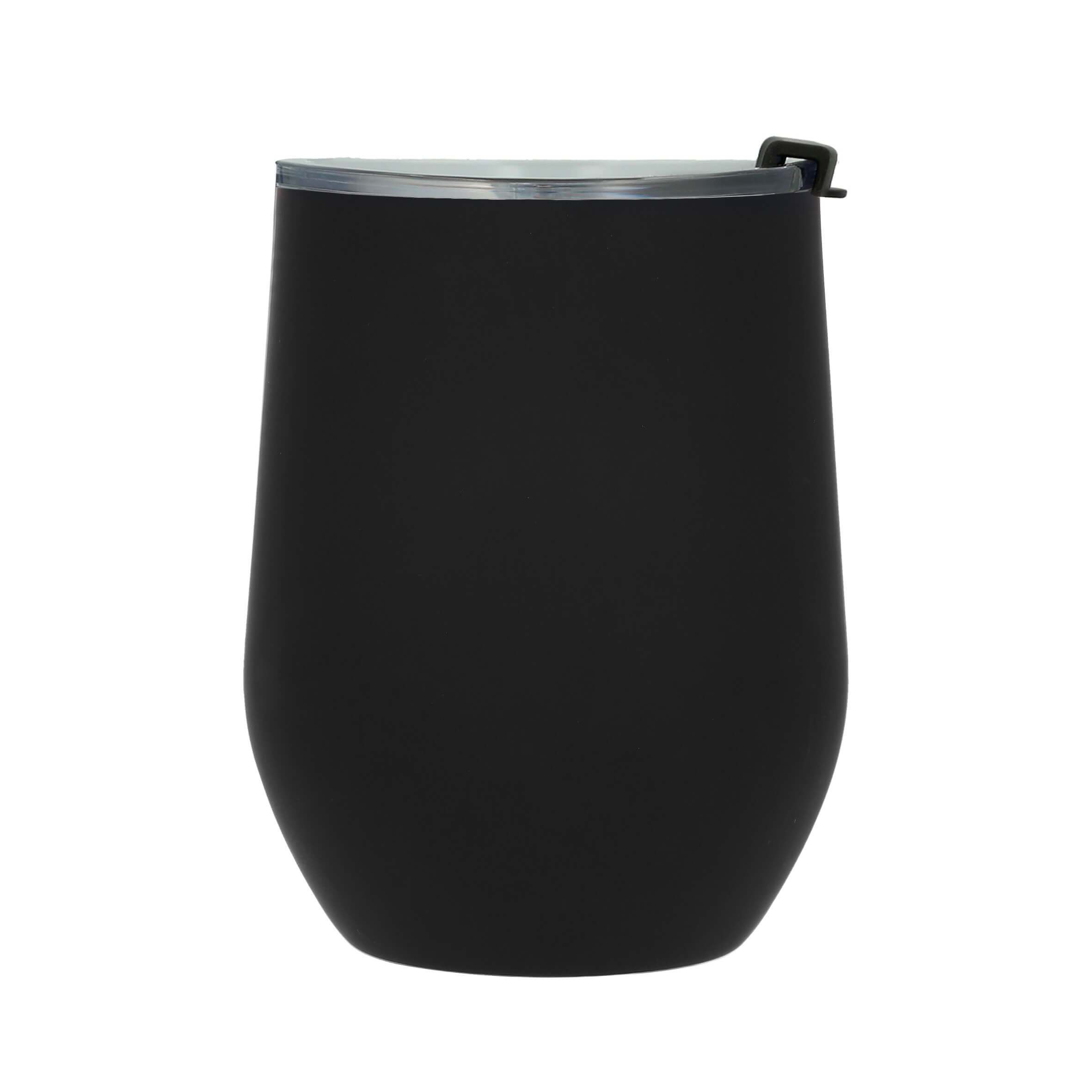 Termo con doble pared de acero inoxidable y acabado rubber. Incluye tapa transparente de cierre a presión.