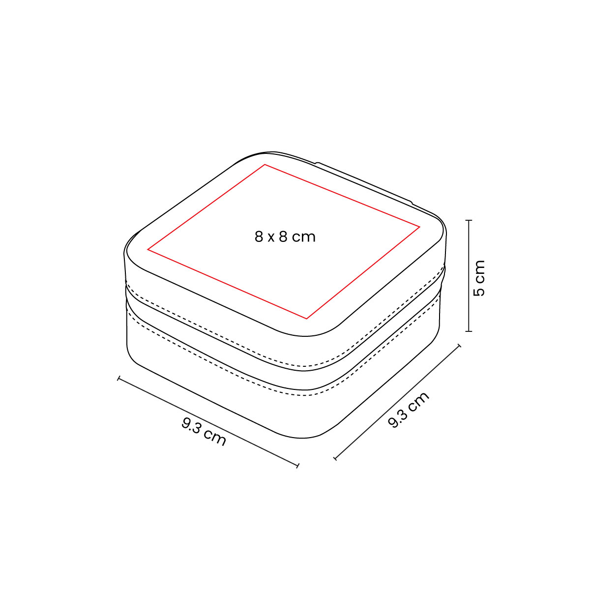 Alhajero con compartimento principal con cierre. Interior tipo terciopelo que protege la joyería de rayones y daños. Incluye 3 ganchos para collares, 6 ranuras para anillos, 1 bolsillo interior con elástico y 4 divisiones. – DAM 038