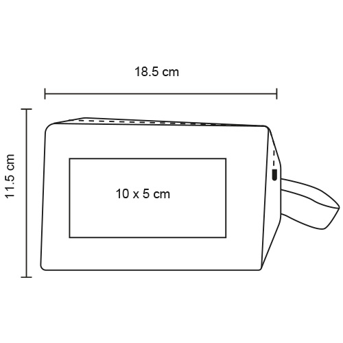 Cosmetiquera rectangular de plástico con acabado frost, asa y cierre.