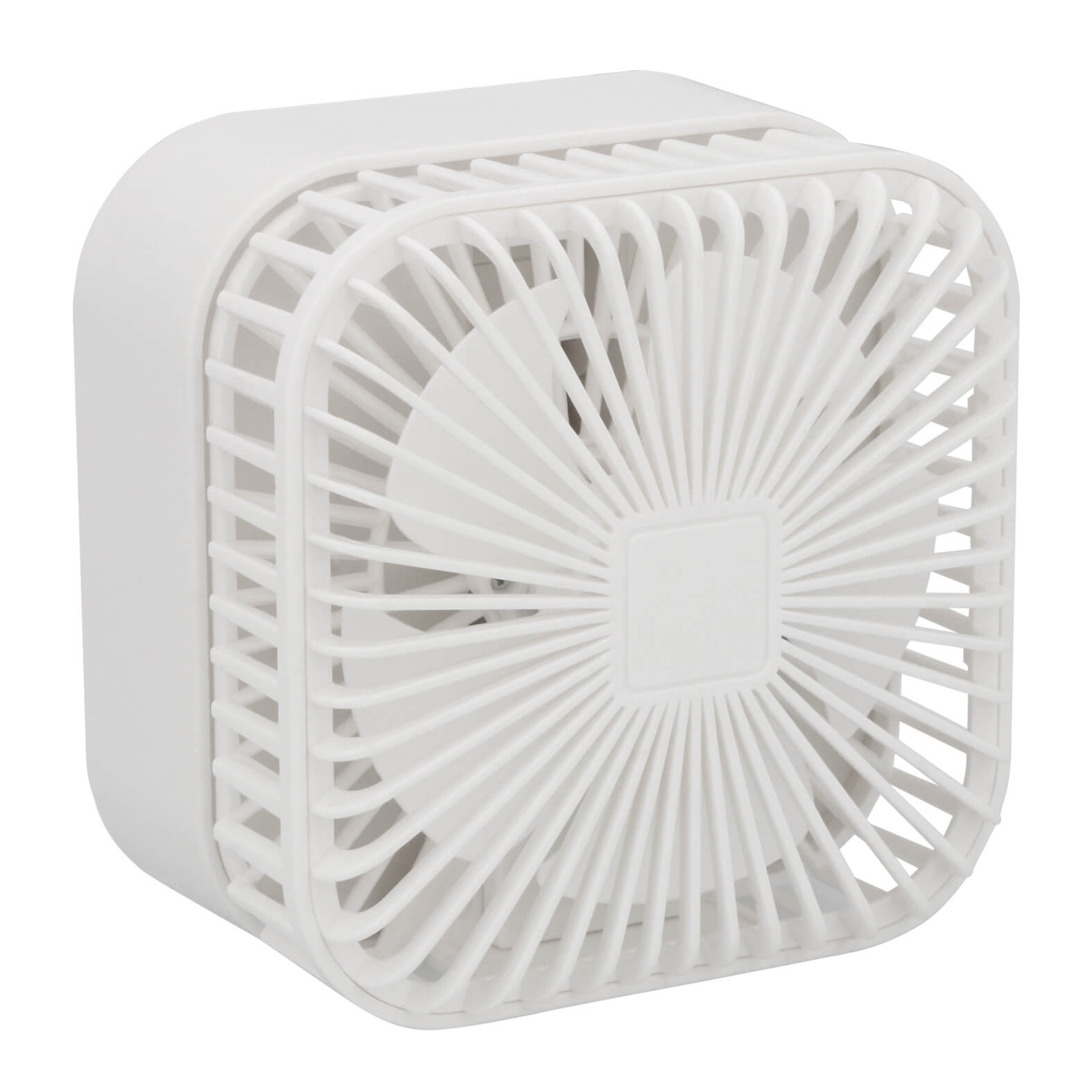 Mini ventilador plegable y de tamaño ajustable capaz de cambiar su posición a 180°. Incluye 3 velocidades, batería recargable y cable de carga DC5V.