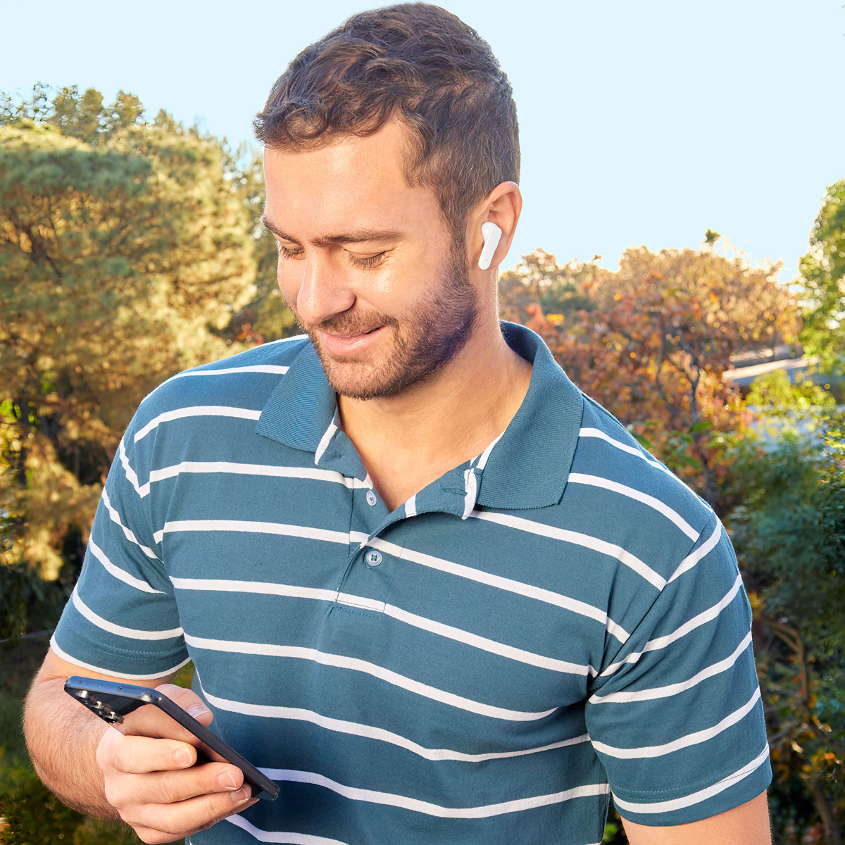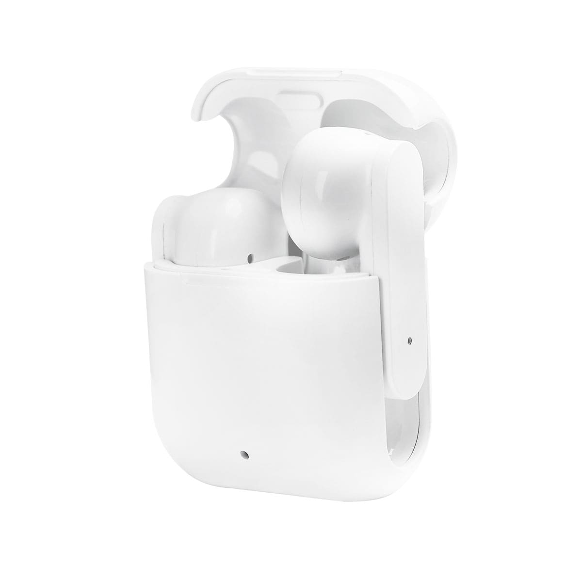 Audífonos bluetooth inalámbricos con base recargable. Control touch para reproducción de música y función de llamada. Reproducción de música de 3 horas aproximadamente. Rango de conexión de 10 metros. Batería de 20 mAh (audífonos) y 180 mAh (estuche). Incluye cable con puerto tipo C. – AUD 041