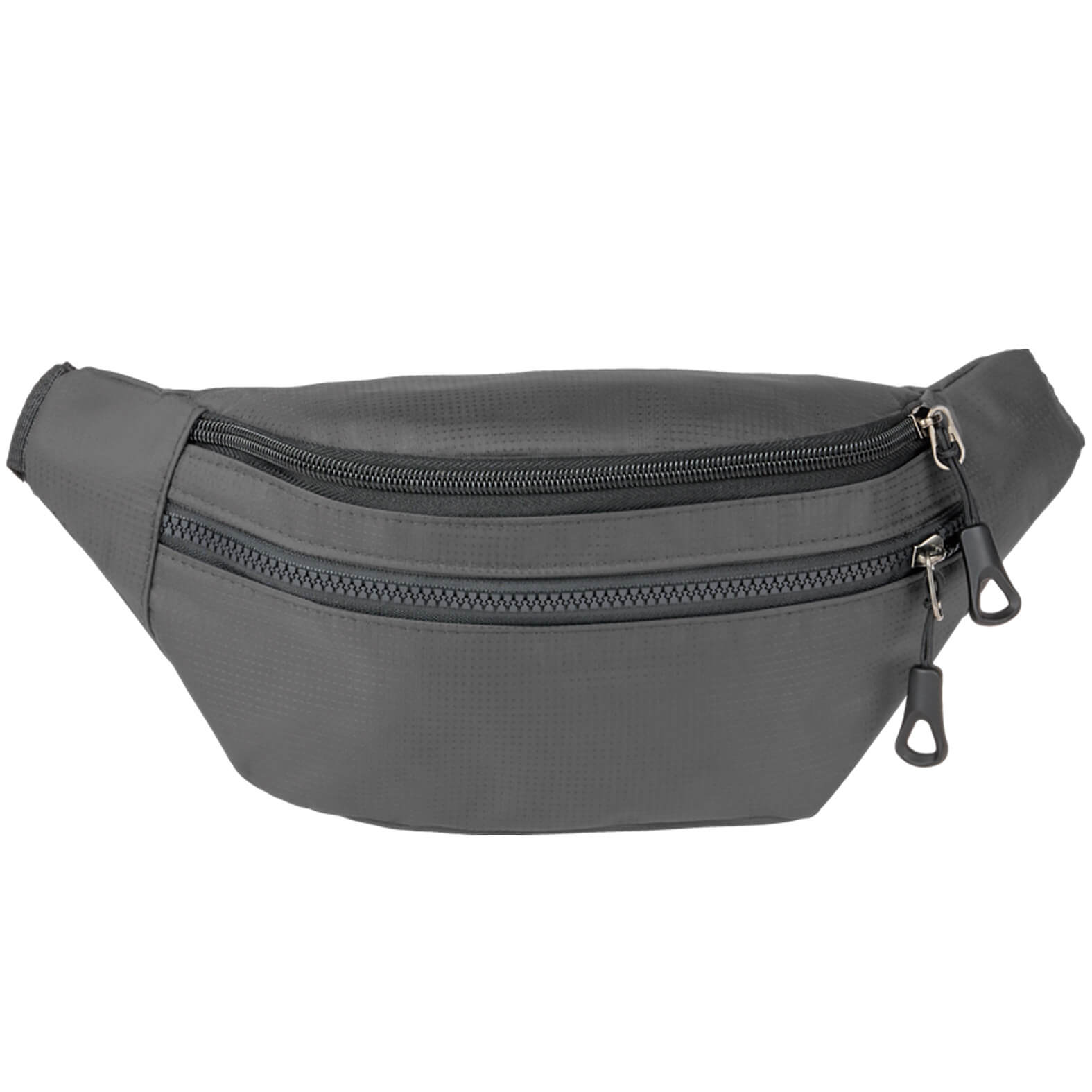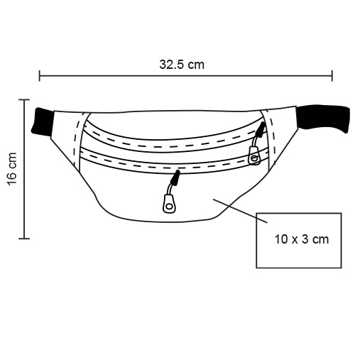 Cangurera de poliéster con compartimento principal, dos compartimentos secundarios con cierre y correa ajustable con broche.