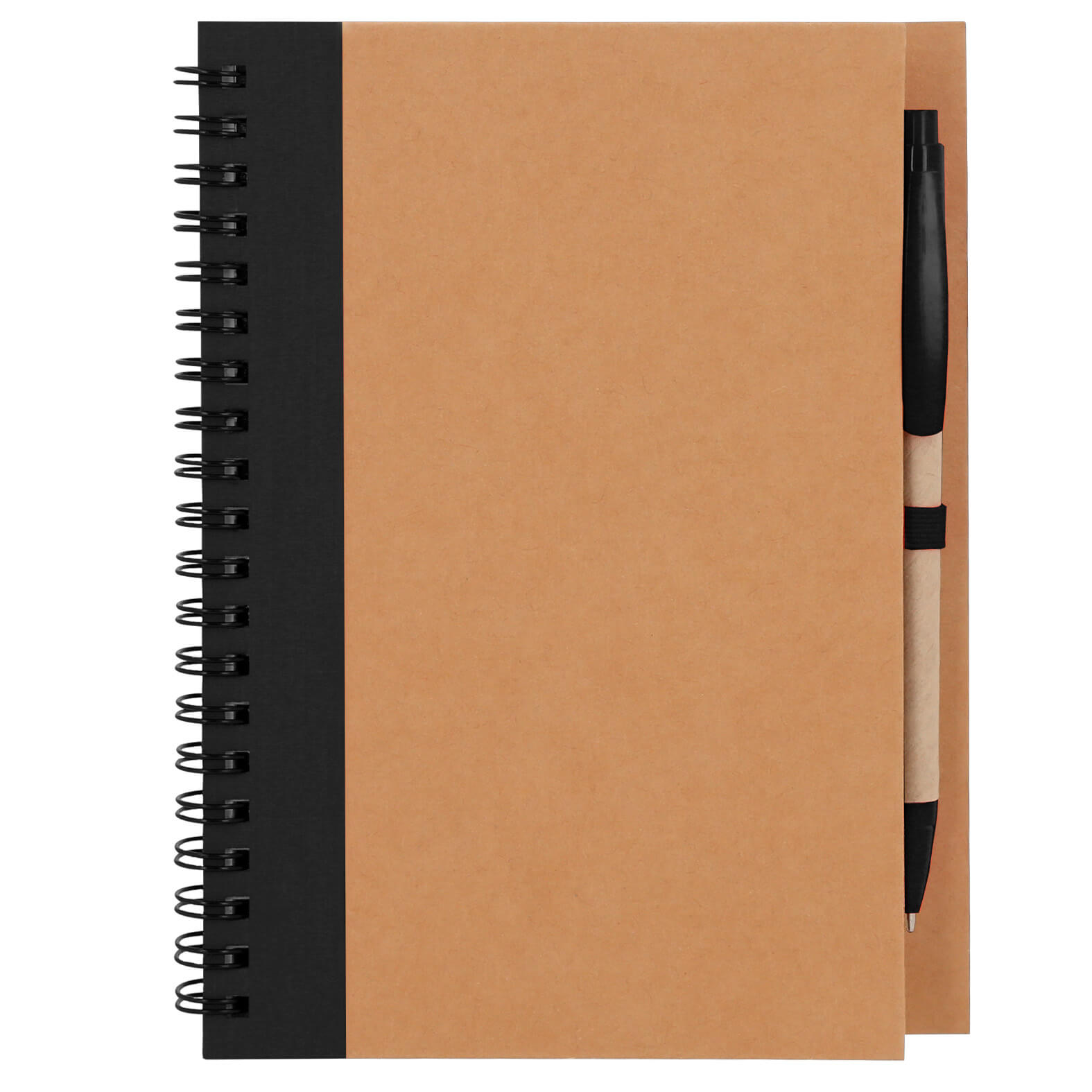Libreta de papel reciclado con bolígrafo, incluye: 70 hojas rayadas.