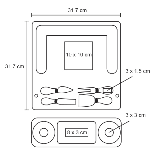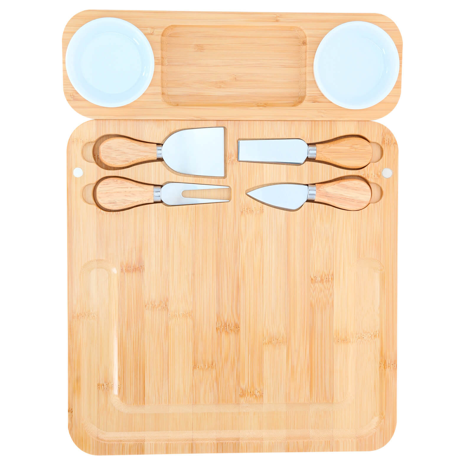 Tabla de quesos separable que incluye 2 mini platos de cerámica, 1 tenedor, 1 cuchillo, 1 cuchillo de avión estrecho y 1 cuchillo de pala.