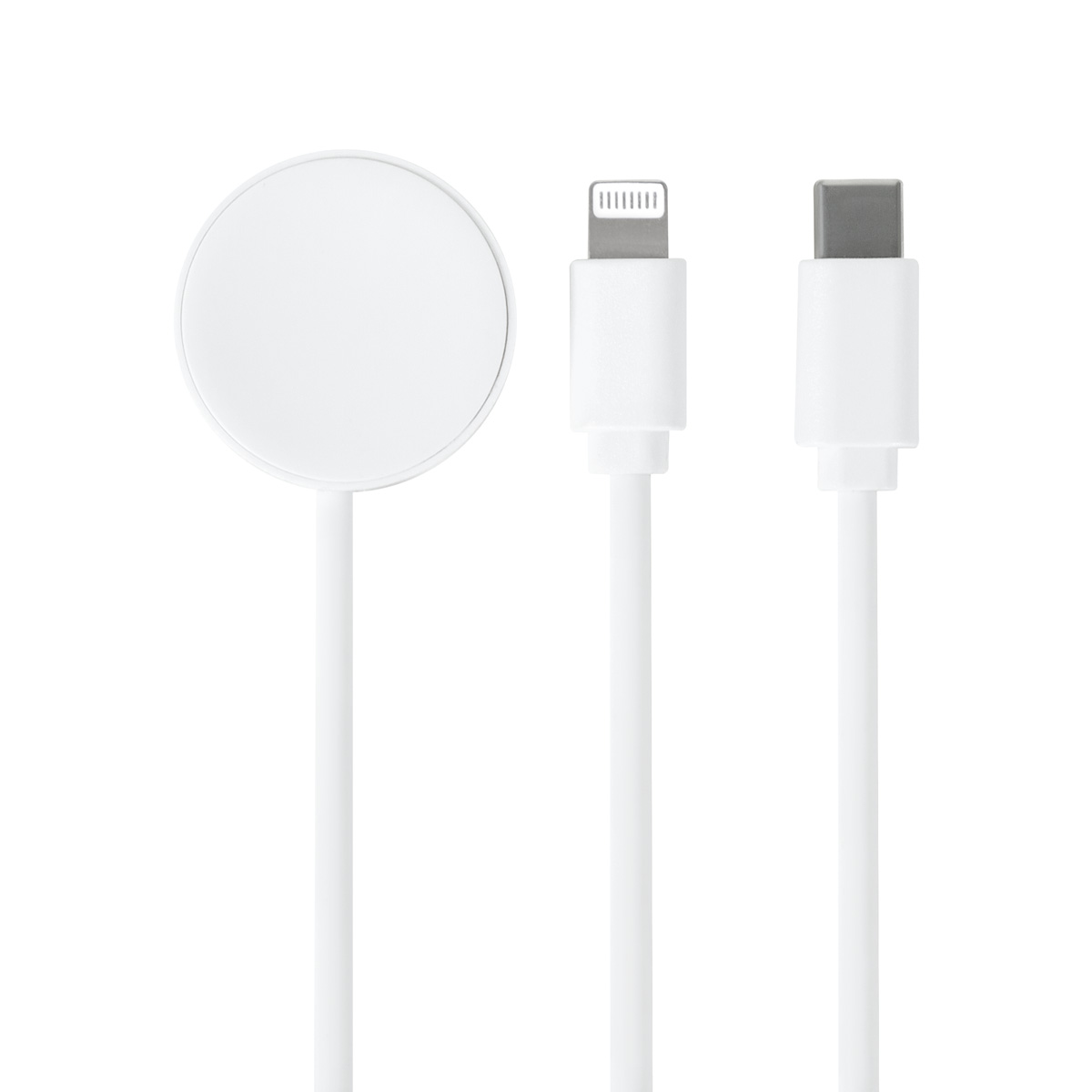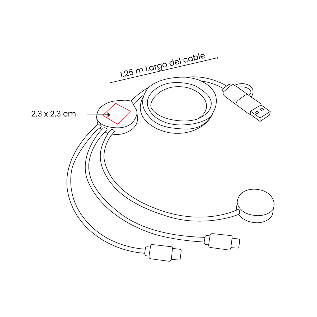 Cable cargador 5 en 1. Incluye conector de entrada USB y tipo C, conector de salida lightning (8 pines), micro USB, tipo C y cargador inalámbrico para reloj inteligente (compatible con dispositivos que cuenten con tecnología de carga inalámbrica). Este cable multifunción, permite cargar varios dispositivos simultánemanete, lo que te ayuda a ahorrar tiempo y espacio. No admite la transferencia de datos. – CEL 069