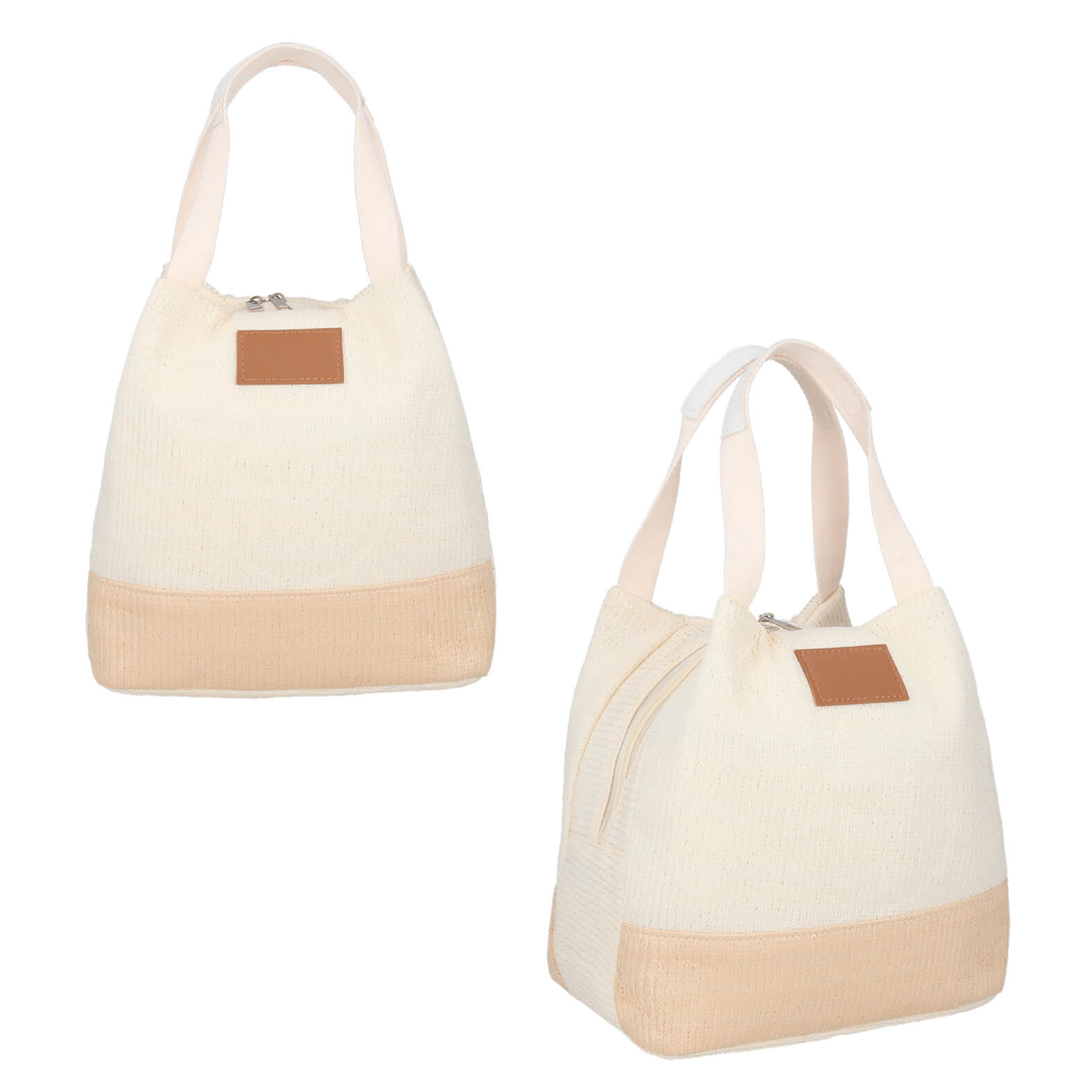 Lonchera con interior térmico, doble cierre y dos asas.