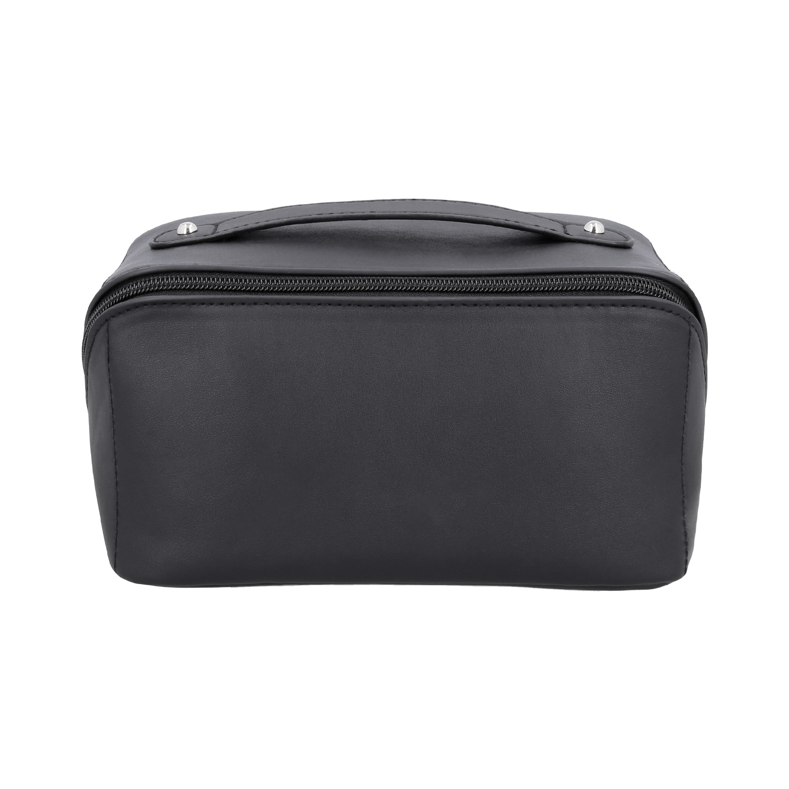Neceser de curpiel con 1 compartimento principal, 4 compartimentos internos y asa.
