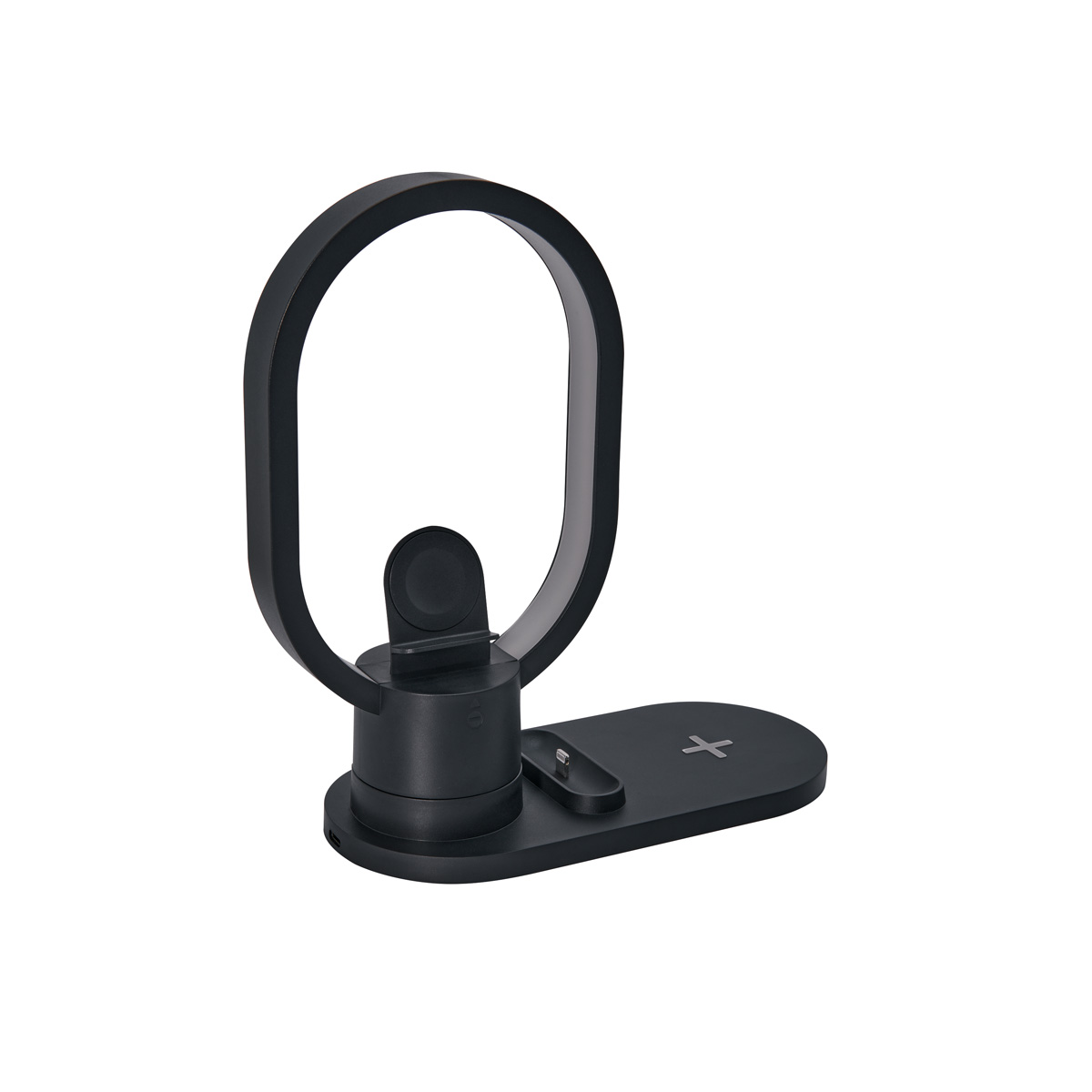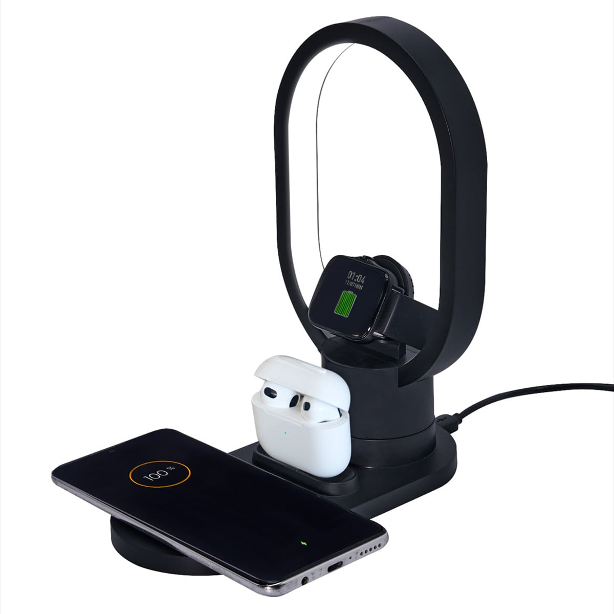 Base con cargador inalámbrico para smartphone, cargador inalámbrico para reloj inteligente, cargador para earbuds y lámpara de noche con luz cálida. Velocidad de carga de 5W / 7.5W / 10W / 15W. Base giratoria con touch para encender la lámpara. Compatibles con dispositivos que cuenten con tecnología de carga inalámbrica. – CRG 051