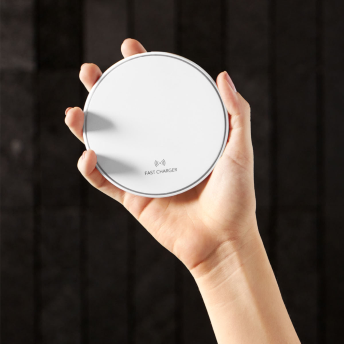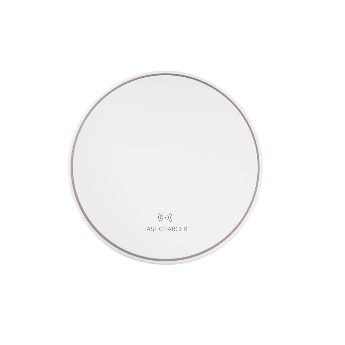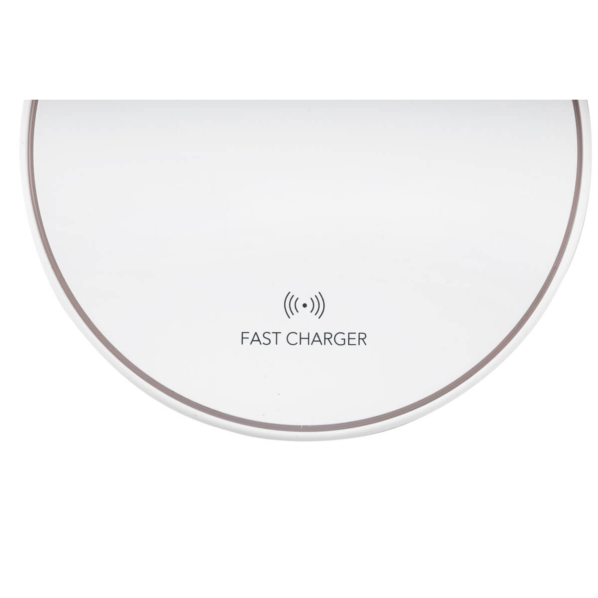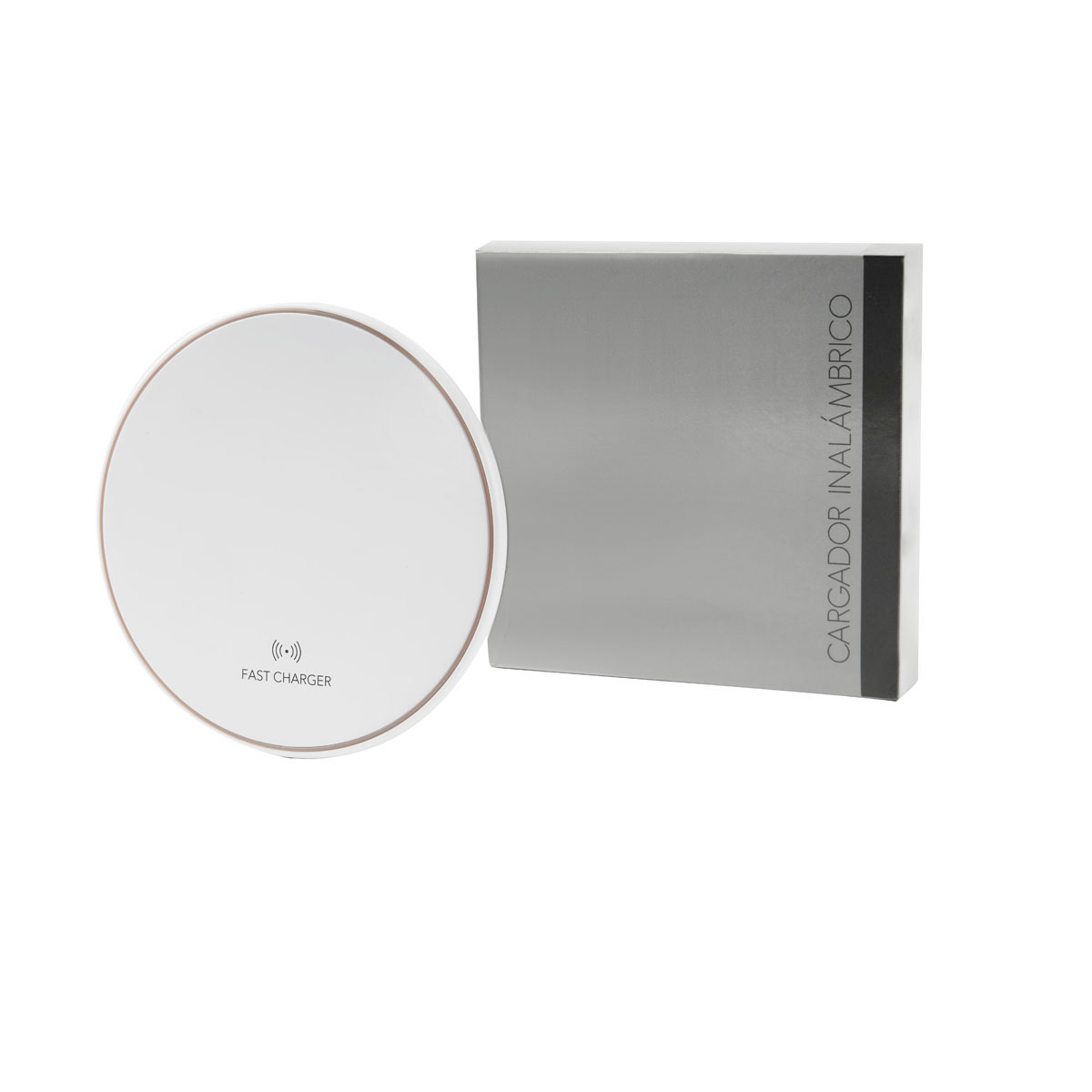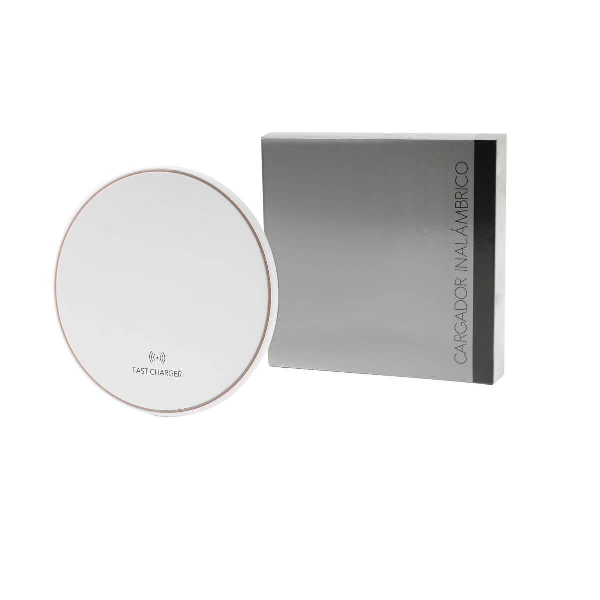 Cargador inalámbrico “fast charge”. Velocidad máxima de carga 15W. Compatible con tecnología de carga inalámbrica tipo Qi. Se enciende luz color verde cuando está en reposo y luz color azul cuando está en proceso de carga. Incluye cable auxiliar tipo C y caja individual. – CRG 053