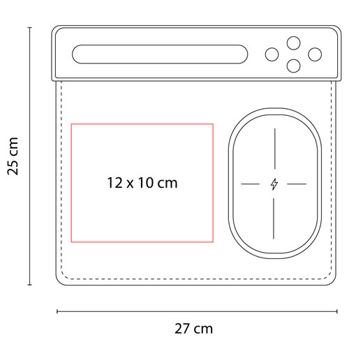 Cargador inalámbrico con mouse pad, porta plumas y soporte para smartphone. Compatible con la mayoría de dispositivos comerciales que cuenten con tecnología de carga inalámbrica. Potencia de carga de 5W. Incluye cable cargador. – AST 002