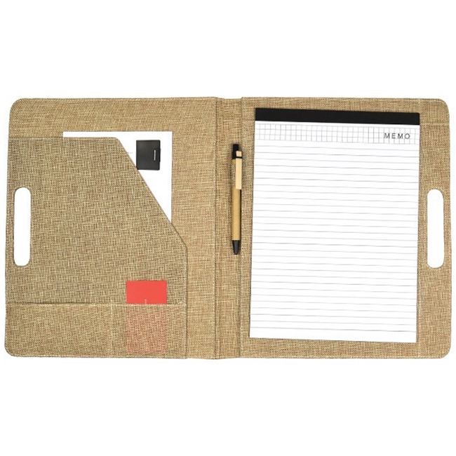 • Incluye boligrafo, block de notas y porta-tarjetero.