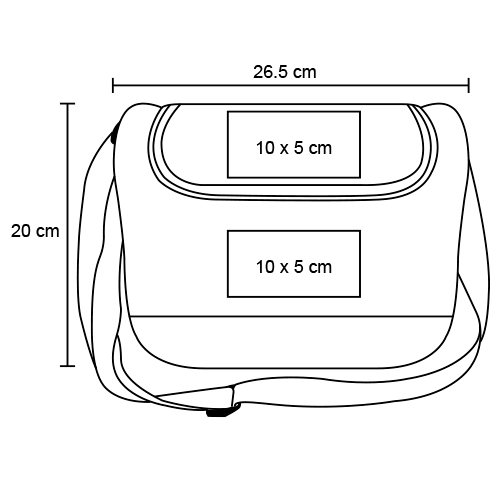 Lonchera con compartimento principal plástificado, asa y correa ajustable.