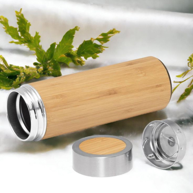 Material: Acero inoxidable con aplicacion exterior de bamboo