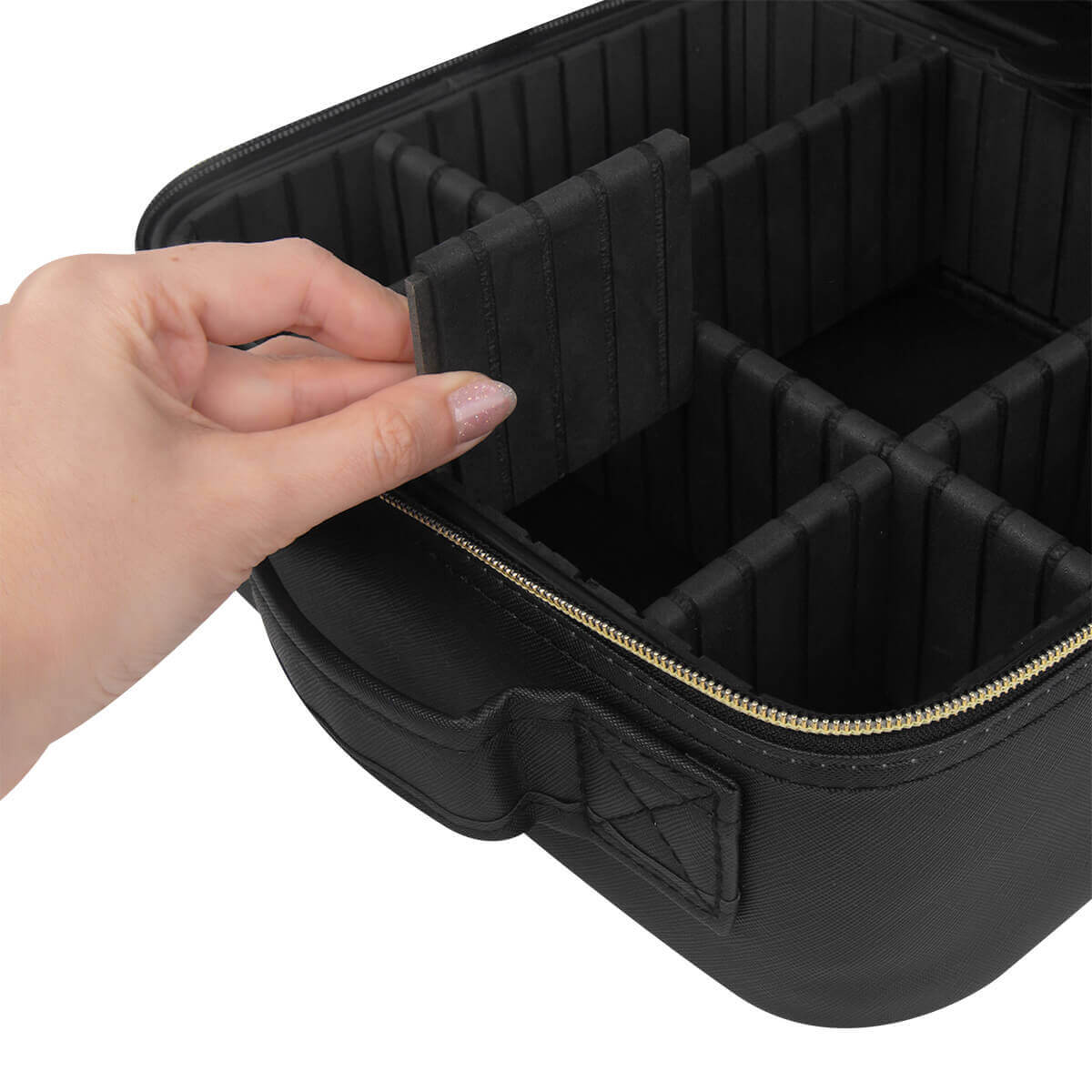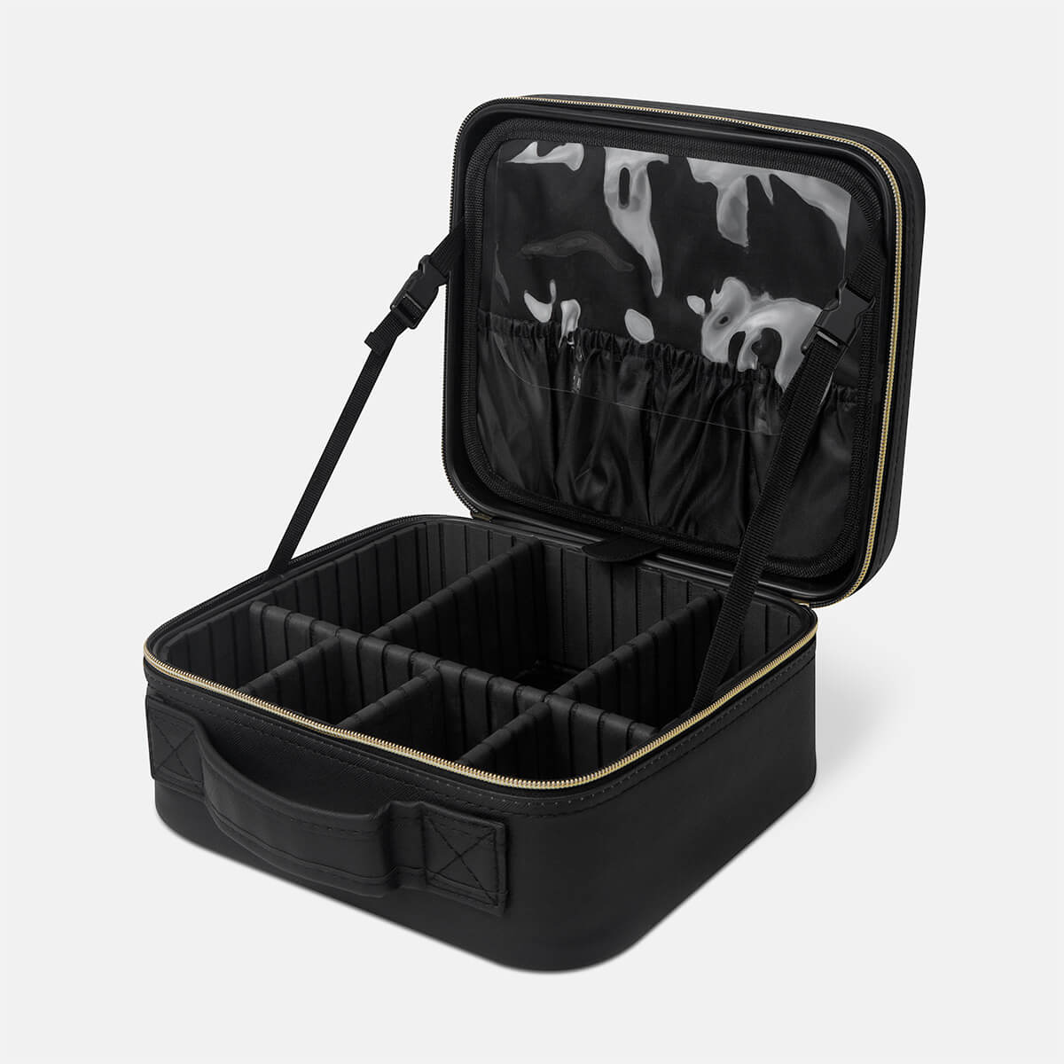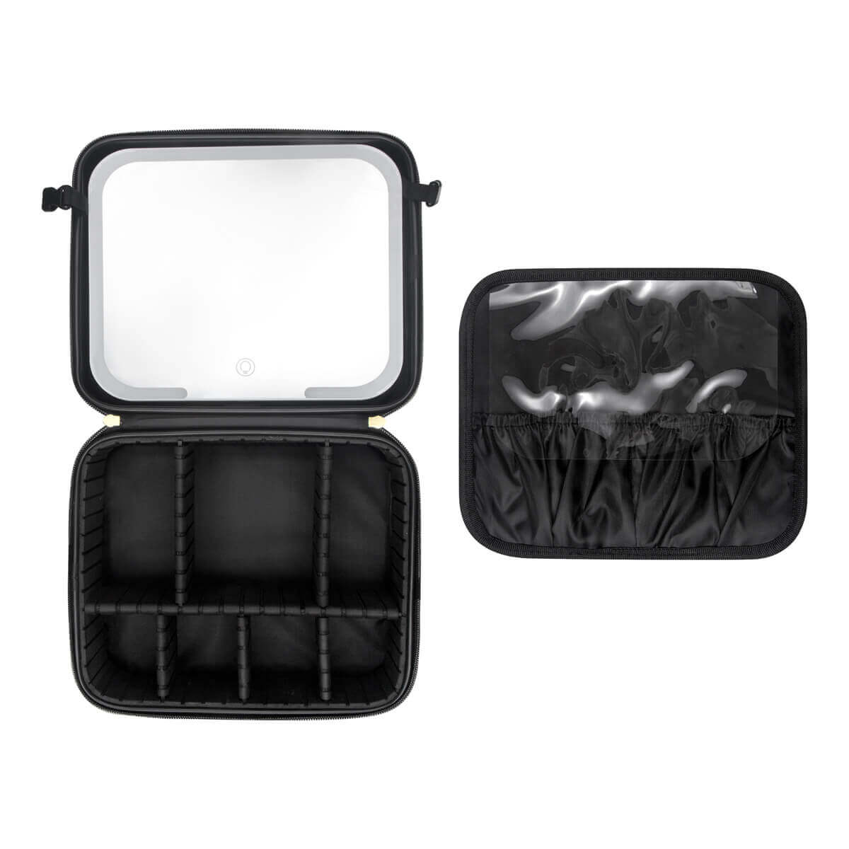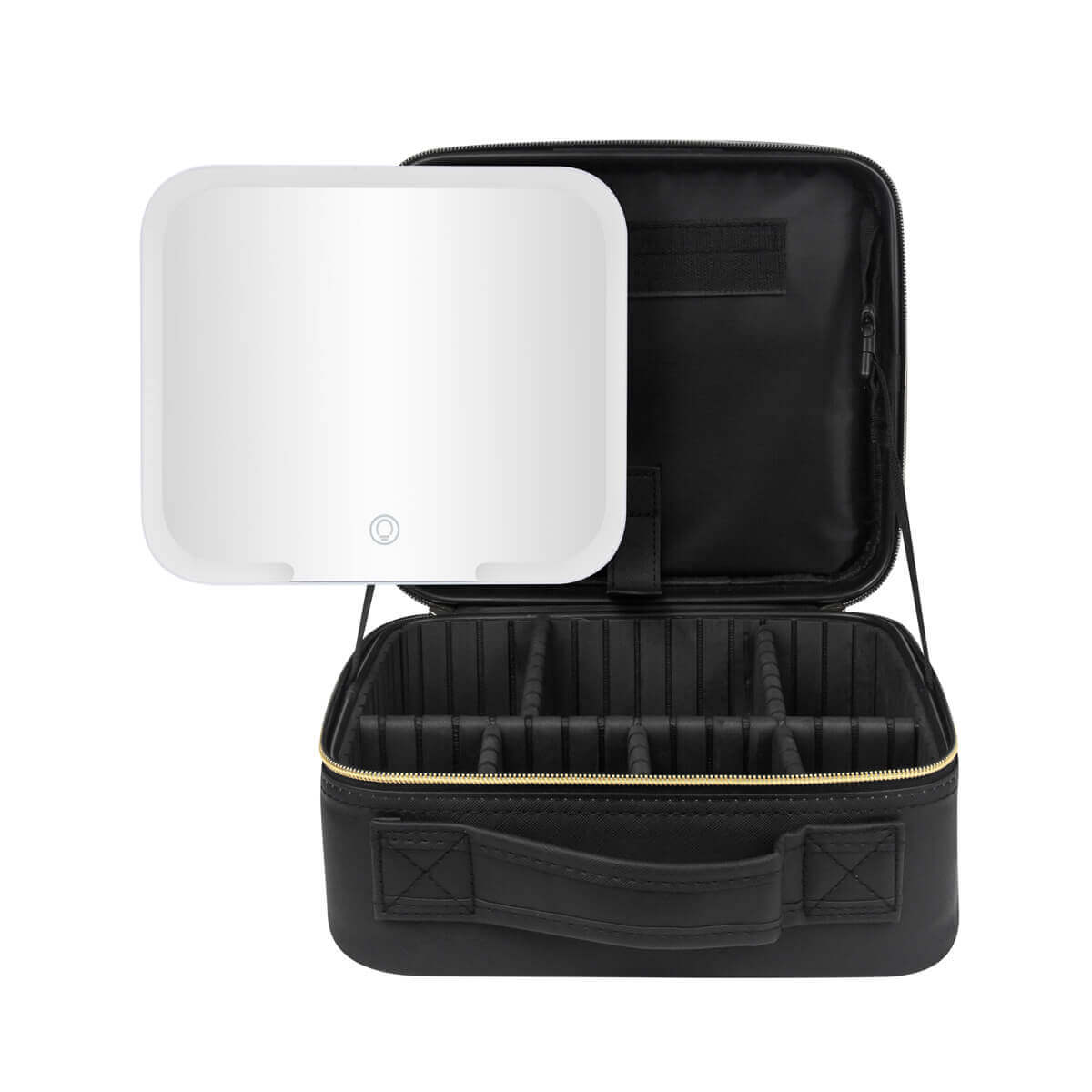 Organizador de maquillaje y brochas. En su interior contiene un amplio espejo de iluminación LED con 3 modos de luz: fría, natural y cálida, las cuales cambian pulsando el botón del sensor táctil one touch. Duración de luz 2 hrs. Puerto de carga tipo C. Incluye cable de carga tipo C. – DAM 078